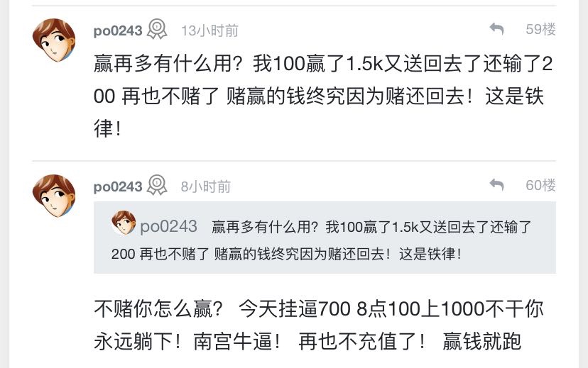 po0243 别说了,赌狗永远都不知道收手 我也记得你每一个评论区都有你的身影