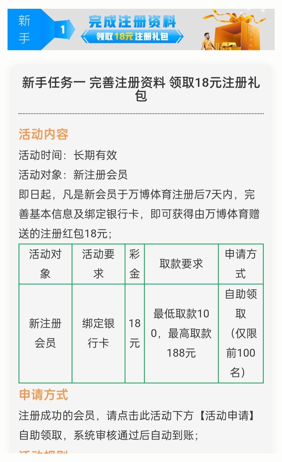 新用户注册绑卡,完善信息,活动大厅自助申请,每天限制100名