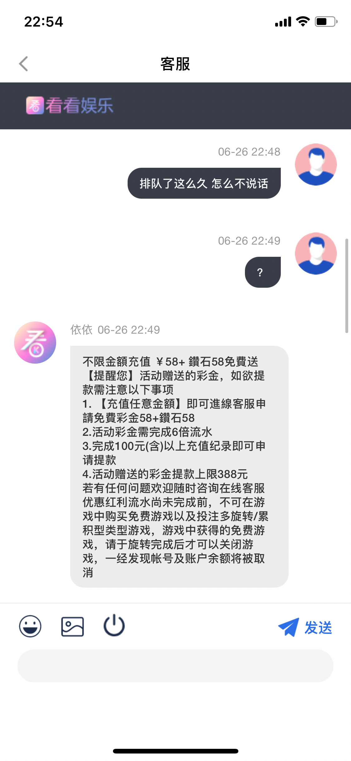 充值才送,提现还得再充值一百以上才能提