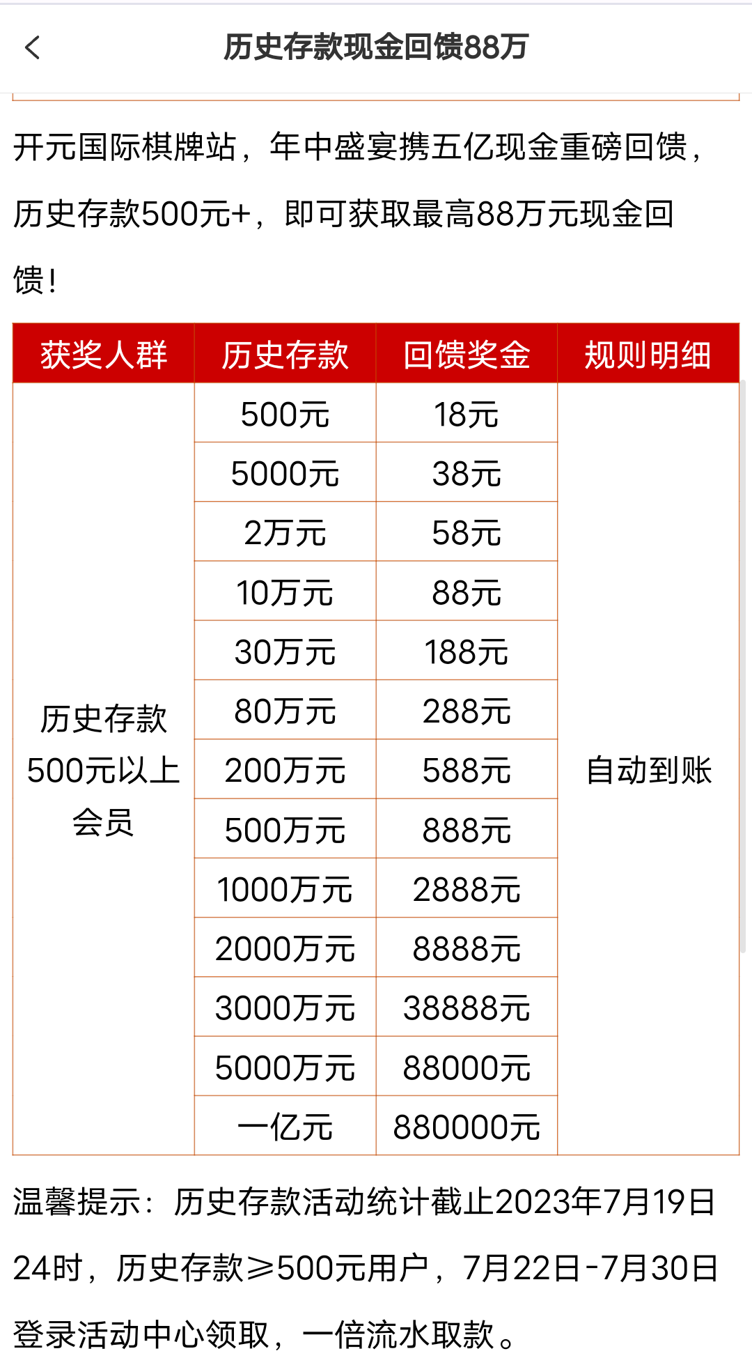 老用户年中回馈送彩金