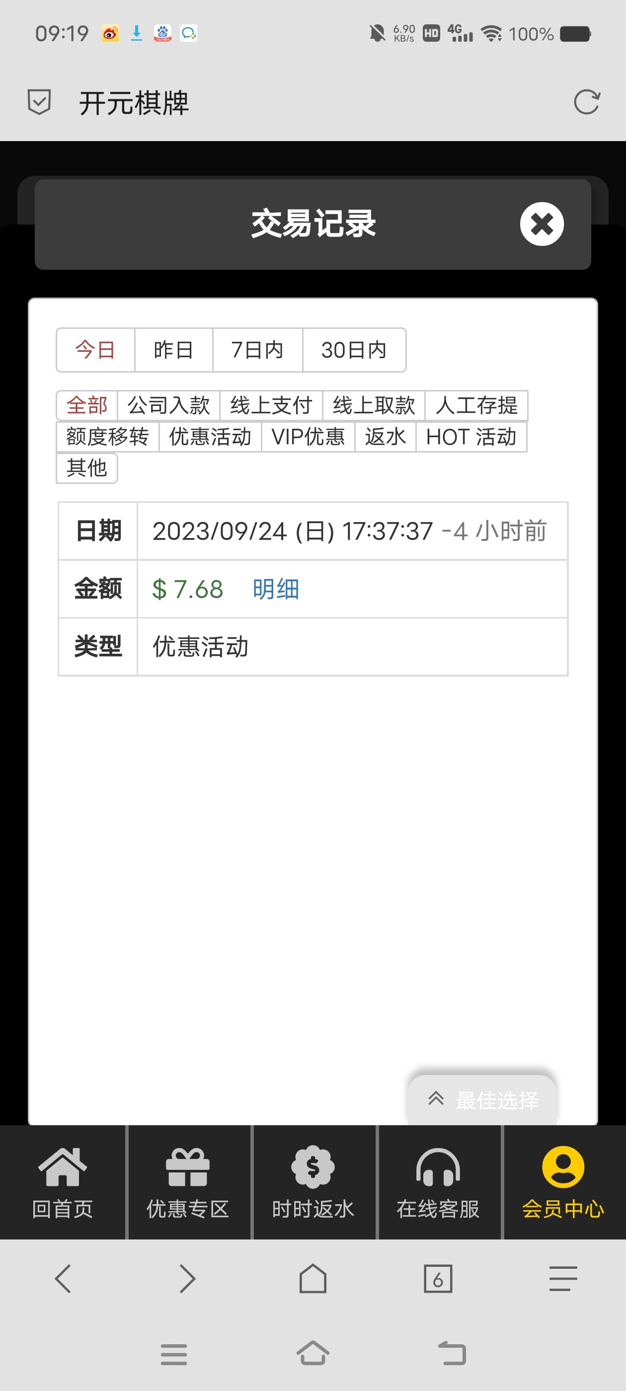 开元9416老用户回馈彩
