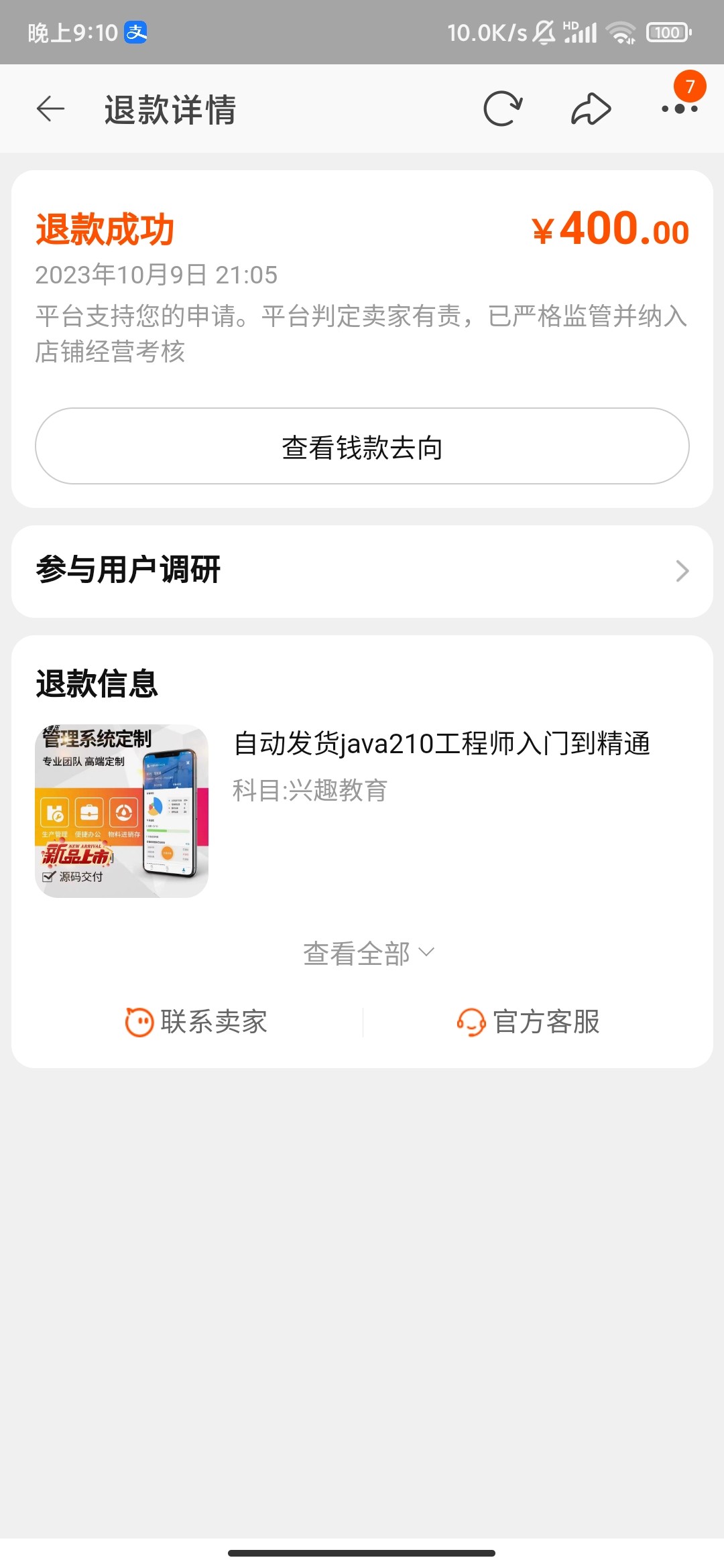 淘宝退款成功了兄弟们
