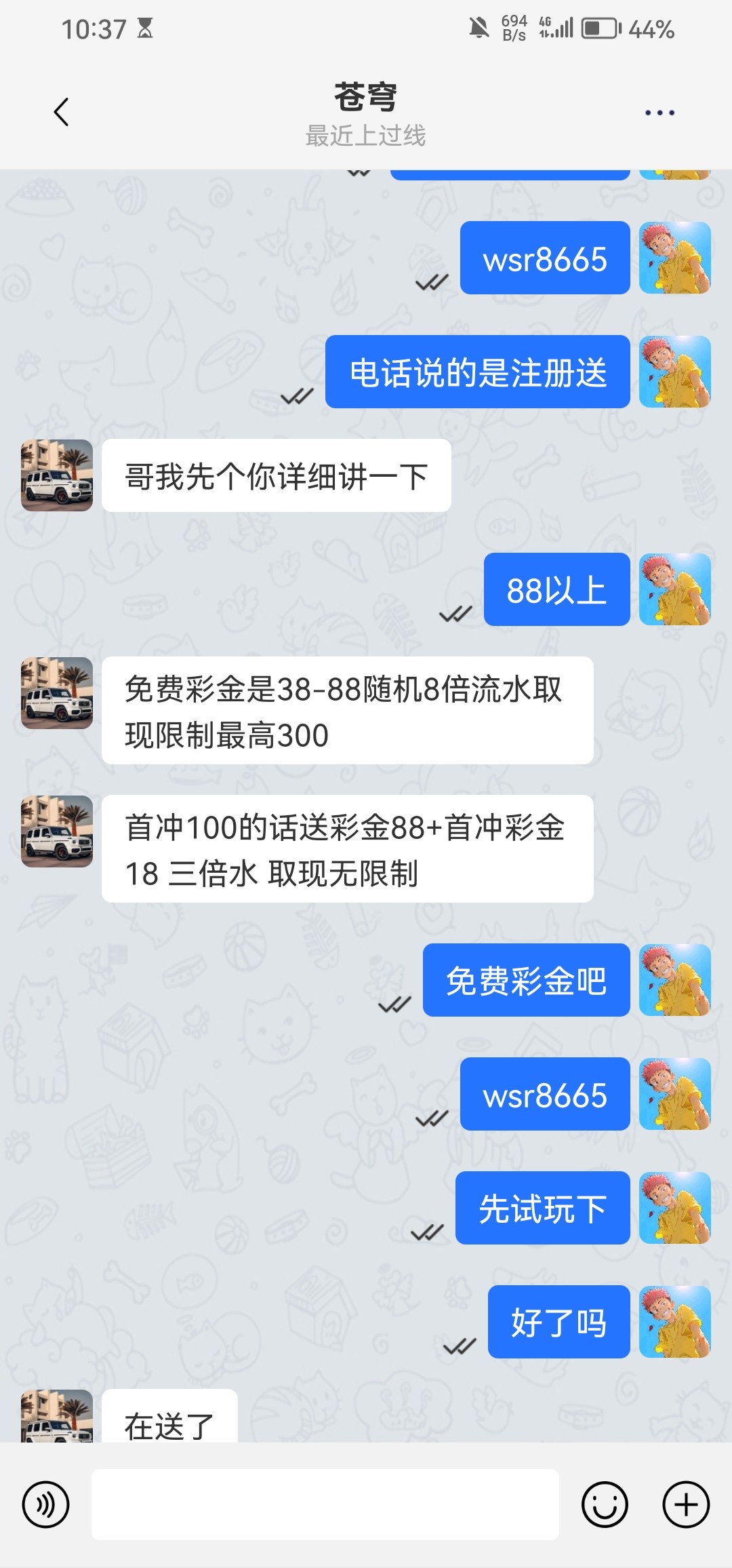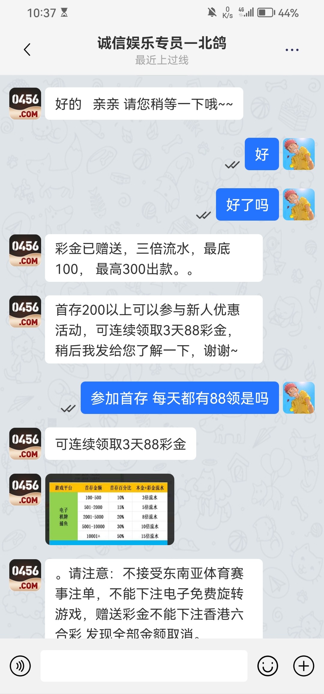 前几天收到电话特邀的 现在可以去加其他专员试试  我今天加了另一个专员又送了88  前几天的88出款271 今天的打没了