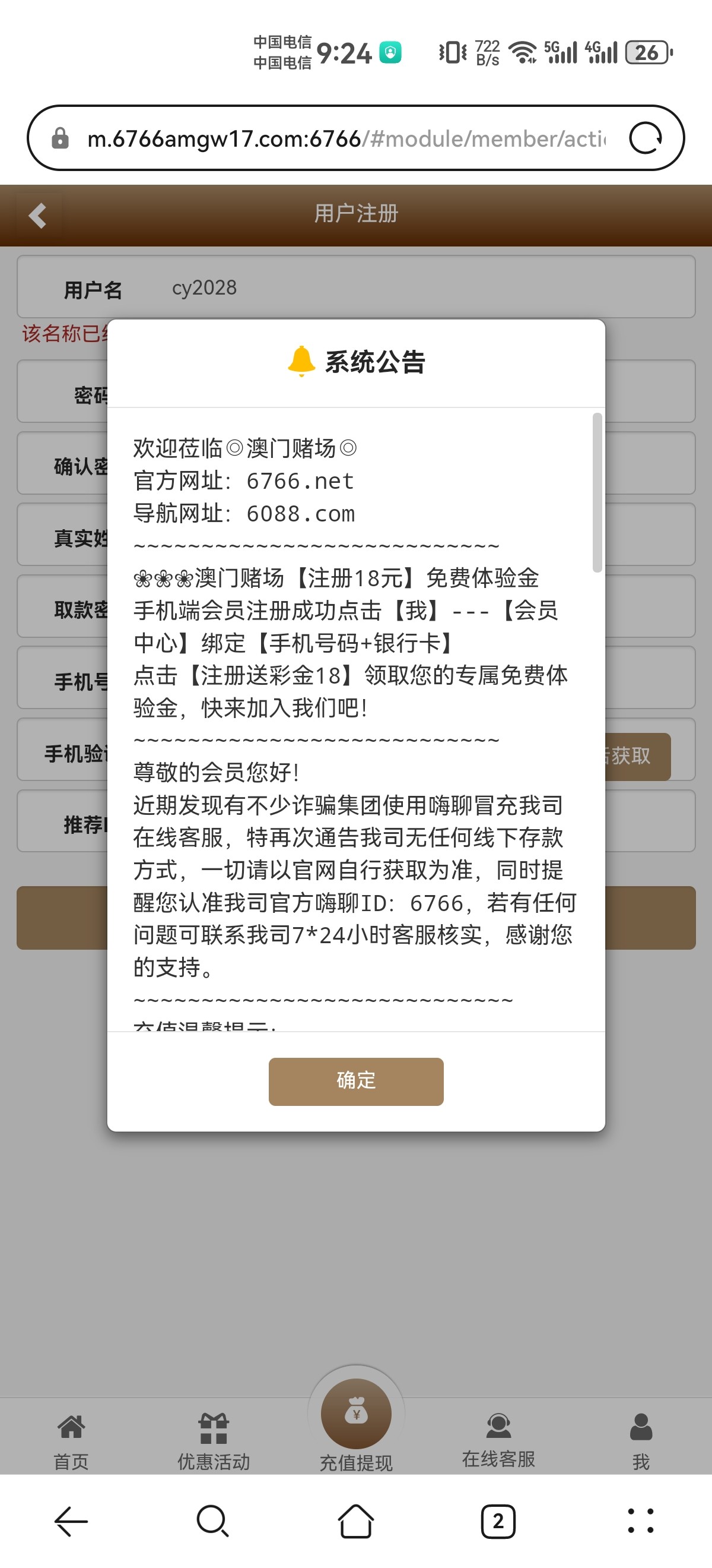 太假了 老是说账号被注册 就是他妈的故意的不让领18彩金