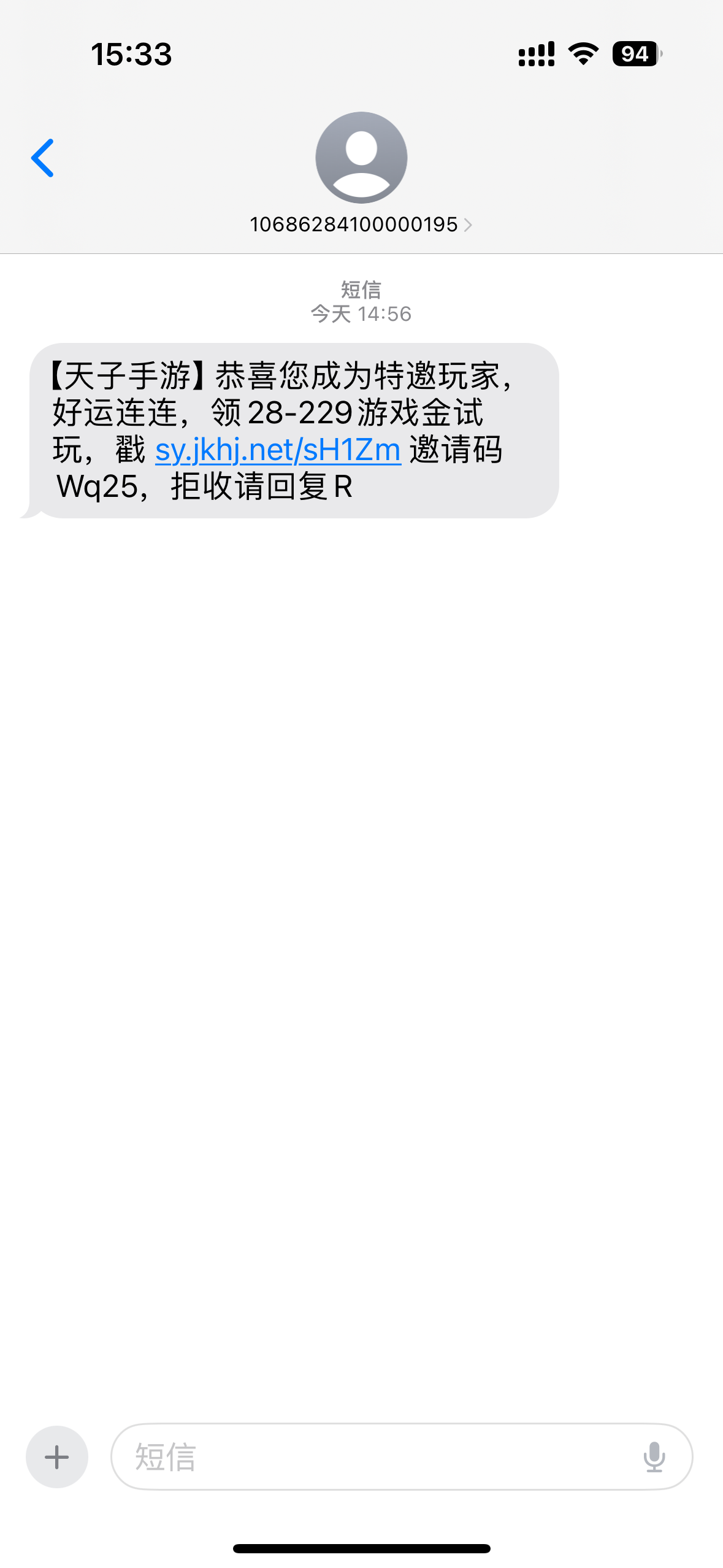 我是收到短信你们可以去看看能不能碰到,链接http://sy.jkhj.net/sH1Zm