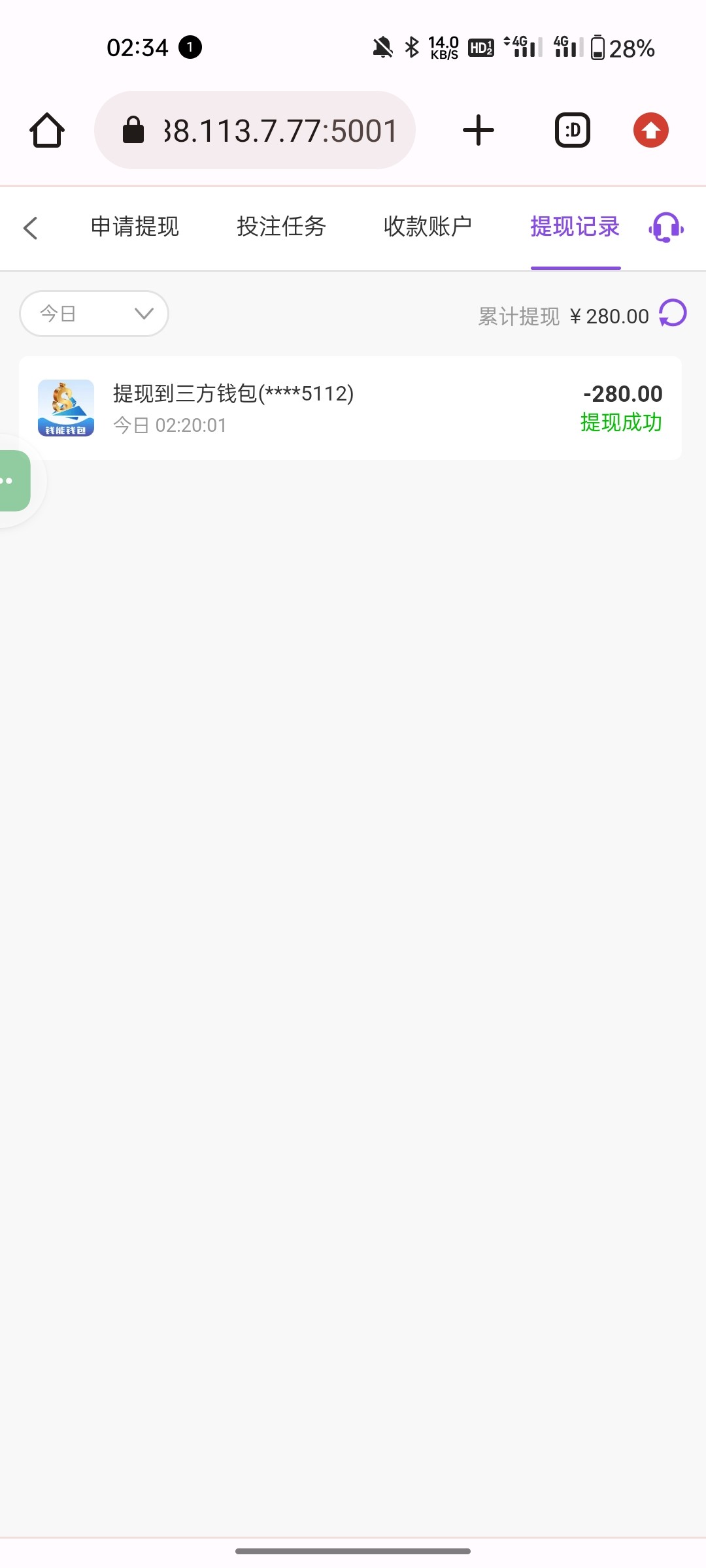 新用户下载APP优惠里面自助申请彩金,手机号在名单秒送28彩金,限制棋牌捕鱼电子,10倍流水打到280提现,只能提钱能,具体自测吧。