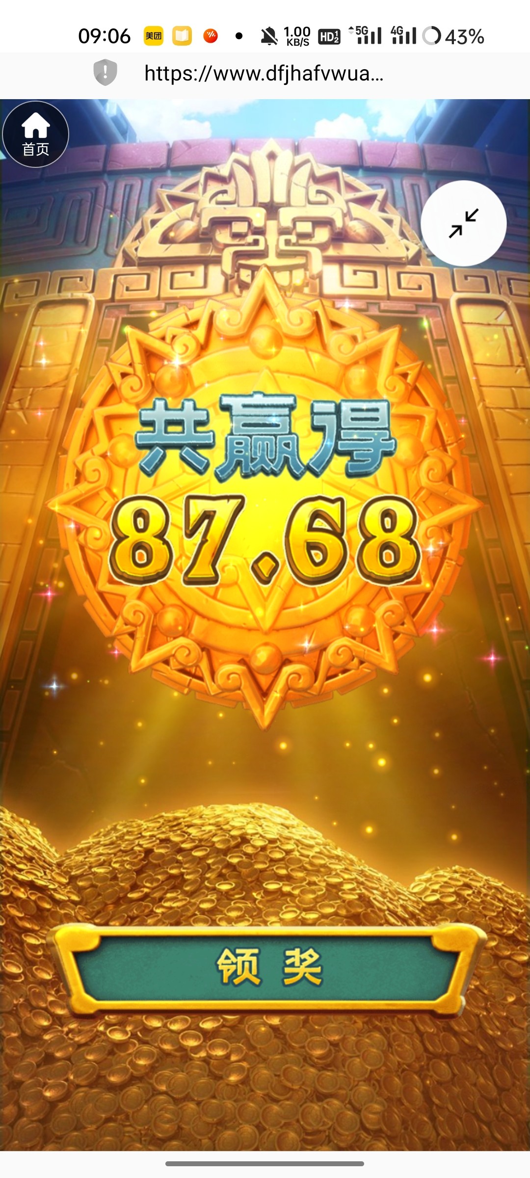 昨天收到短信没法验证码,刚才去玩女王剩5块不到水了168秒到账