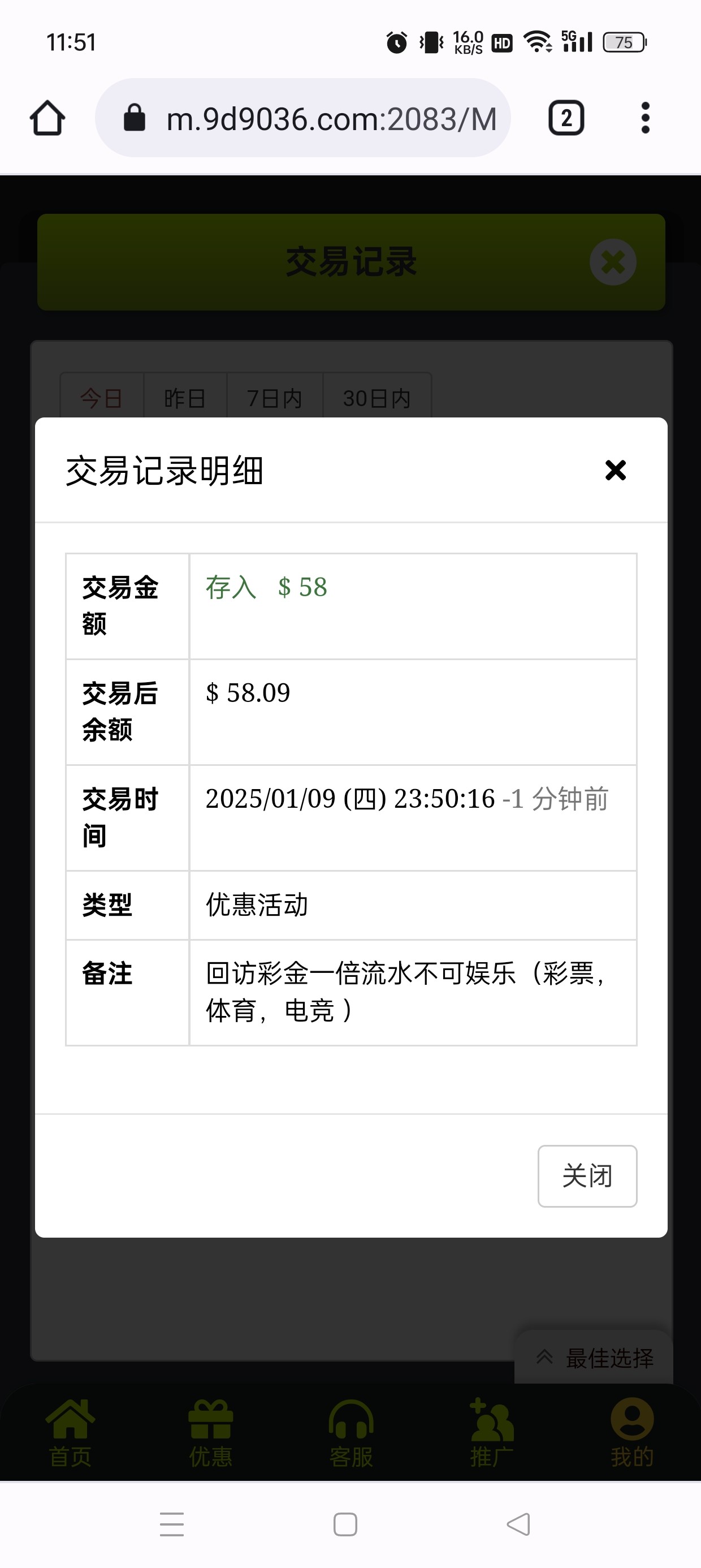 我接到电话了,然后联系客服送的,网址9d.cc