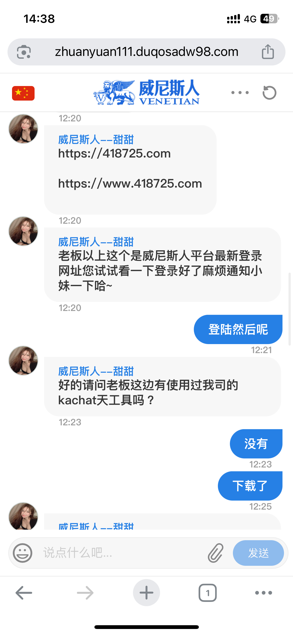 https://www.418725.com前天朋友接到电话特邀,给了他这个网站注册送了88,我也昨天尝试去注册了个,今天打电话来说送彩金,这个地址是特邀地址,官网的连注册都注册不了,需要邀请码,这个不需要,注册了等回访,我送了48,打女王出了个五连,然后百家乐下了把50,提了202。大家都去试试吧