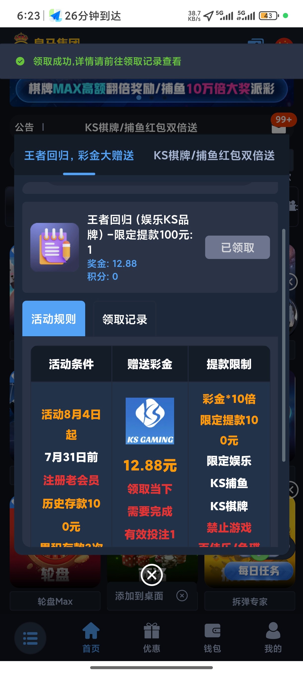 皇马老用户登录回馈