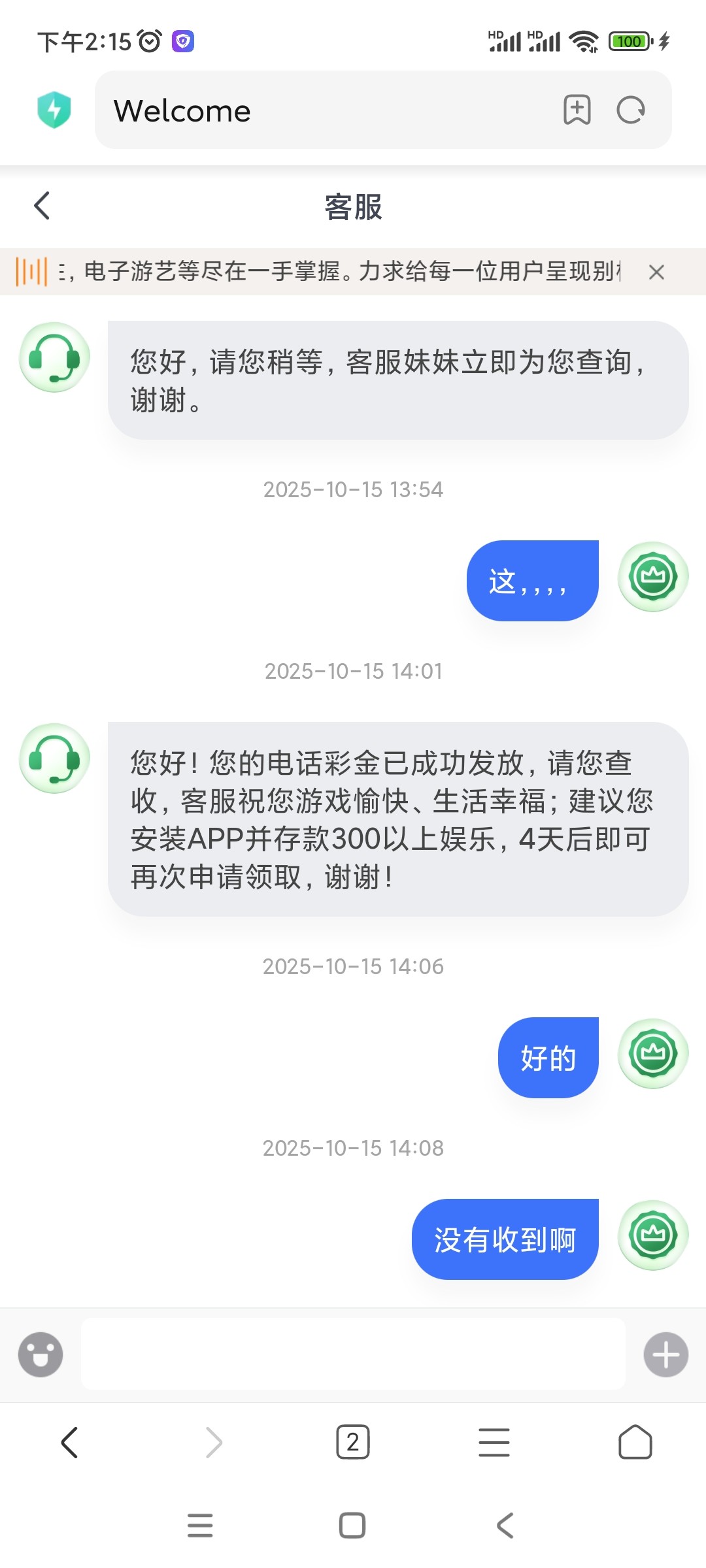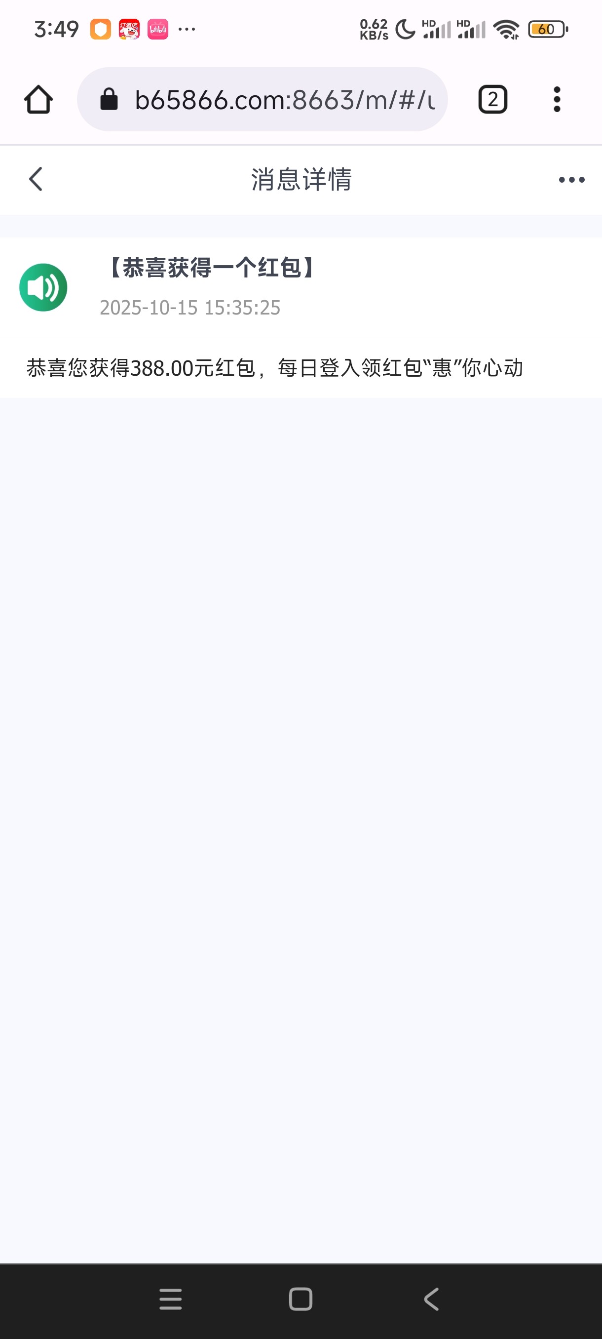 以前可以领取好几次388的bet365貌似活动又开始了 今天打电话过来让我领取了 老哥们可以去碰瓷一下