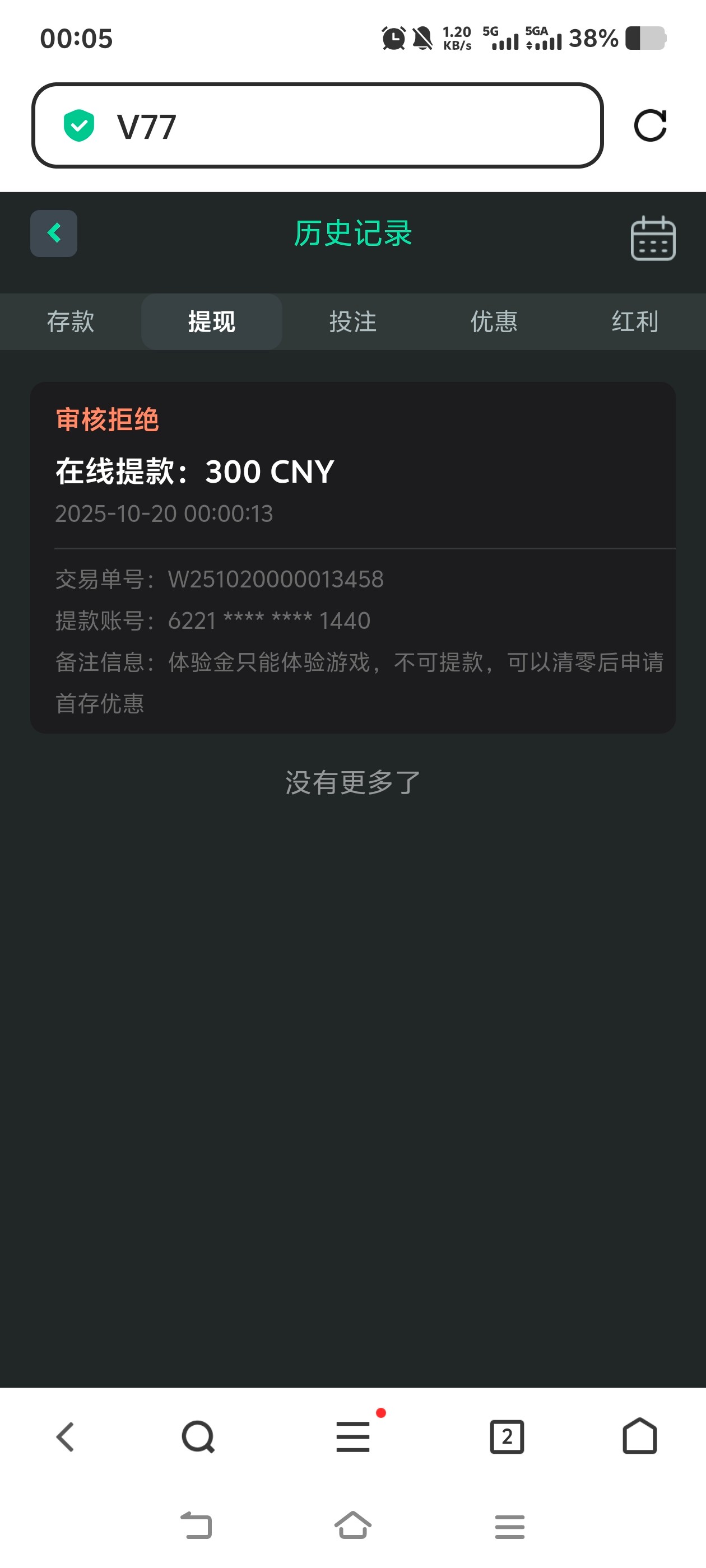 黑台一个,账号都冻结了