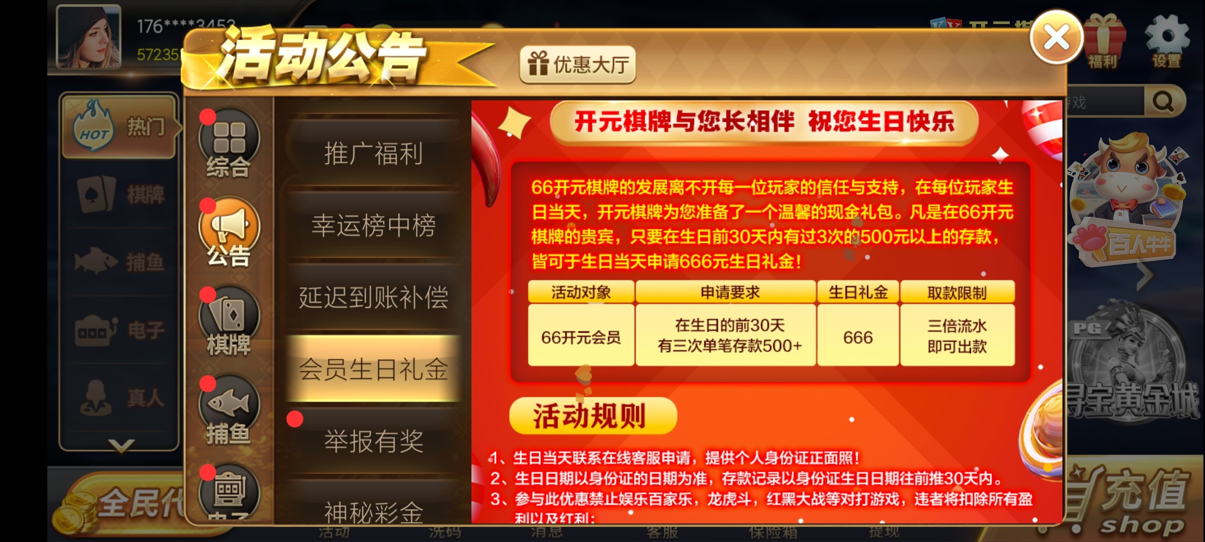 66开元生日彩金666,我都领取了,两次了,今年玩的少,马上要生日了,不知道给不给