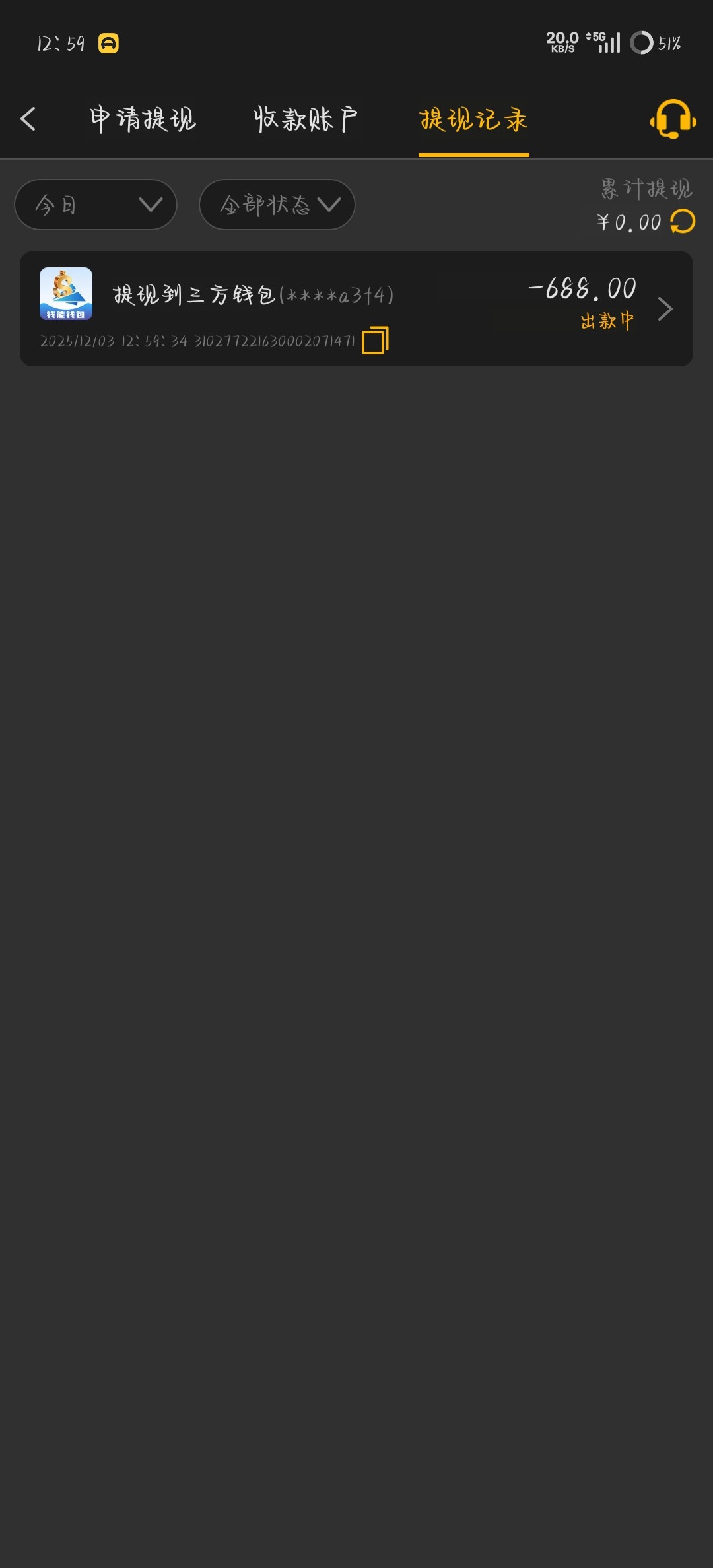 只能提688  不知道到不到