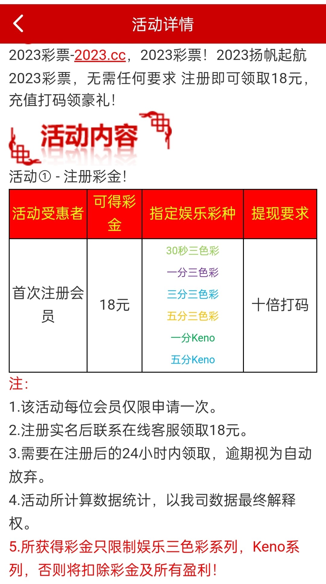 2023彩票注册送18彩