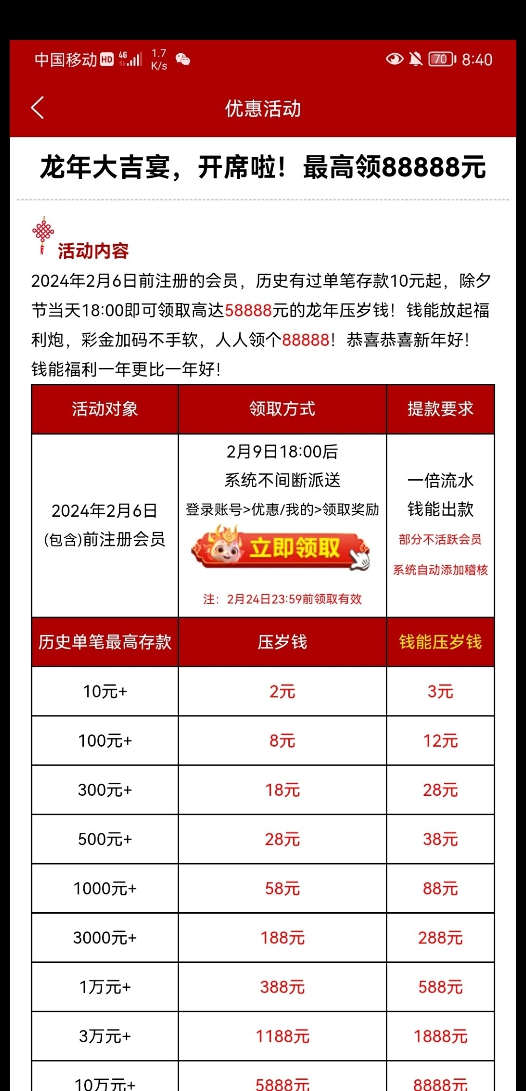 可领888,领了也是挂壁,可能还倒贴。还是不去领了