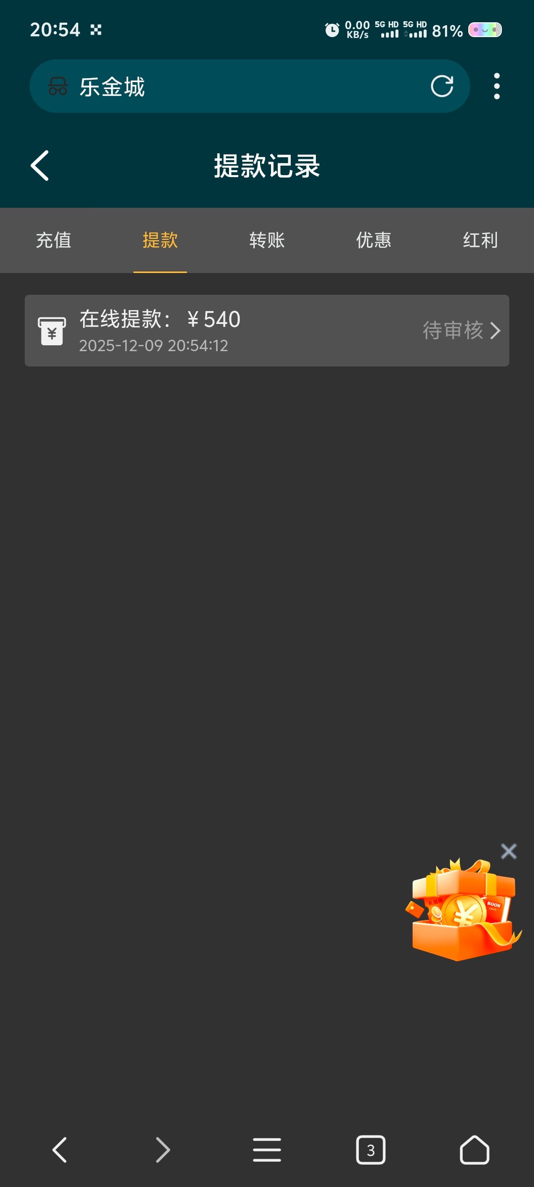 提款几个小时了