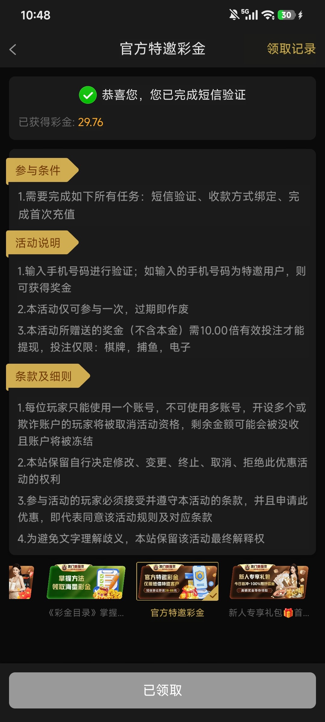 纯出生平台 冲50打了78流水 特邀领了30打了42流水