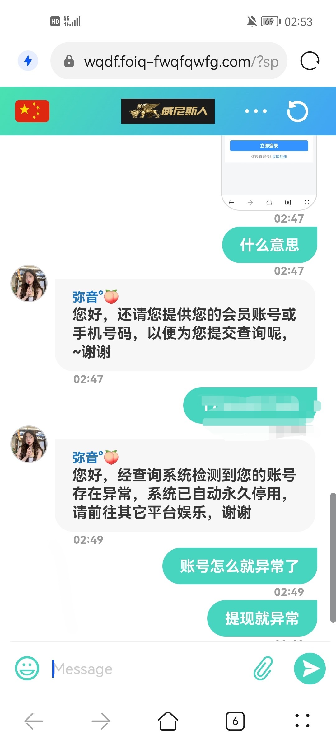 a747898 当时送的188 打到700出款失败 尊敬的会员您好,您的提款申请经系统稽核发现异常,现转接人工出款,首次提款需核实账户是本人使用,充值账户余额等同金额(例:账户余额100需充值100元完成一倍打码量 ...