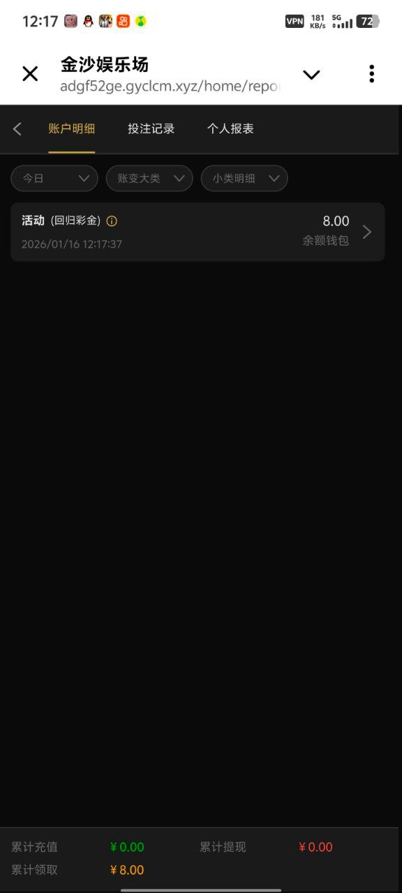 老用户有号登录在任务里自助领取8彩金,有就有没有无视吧