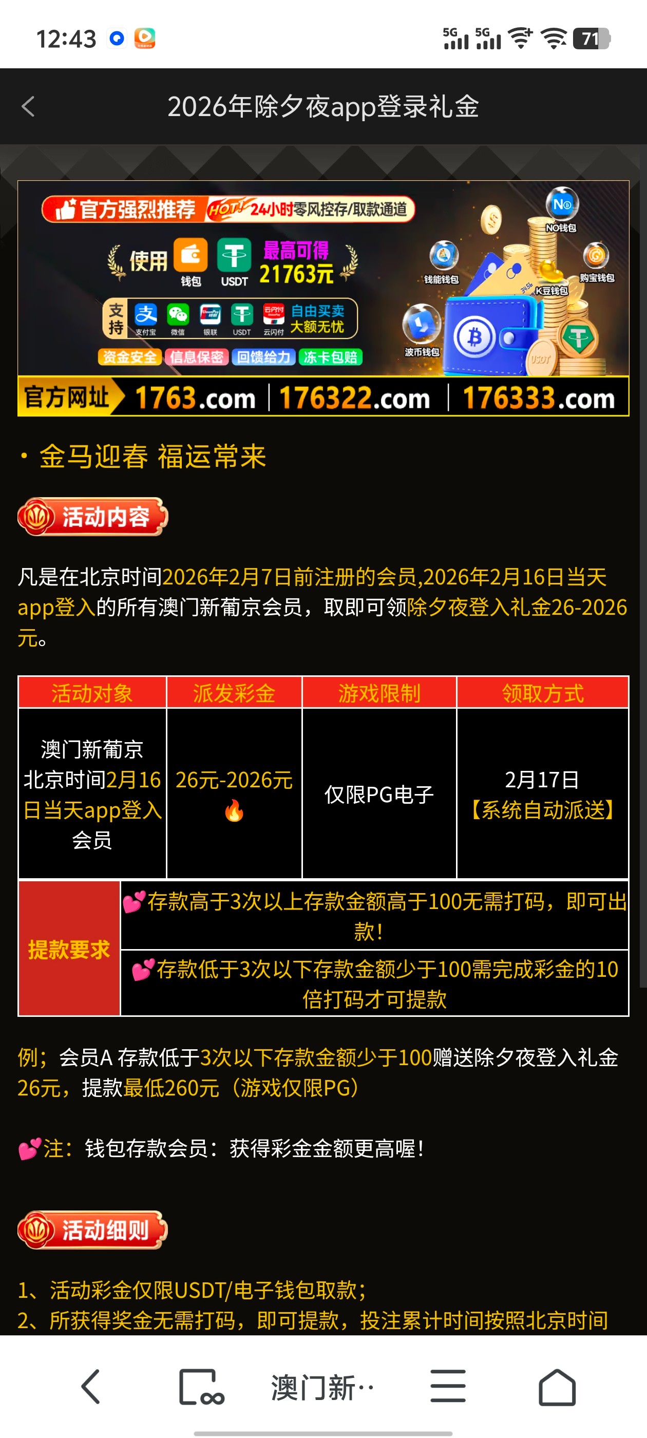 1763除夕登录领取彩金