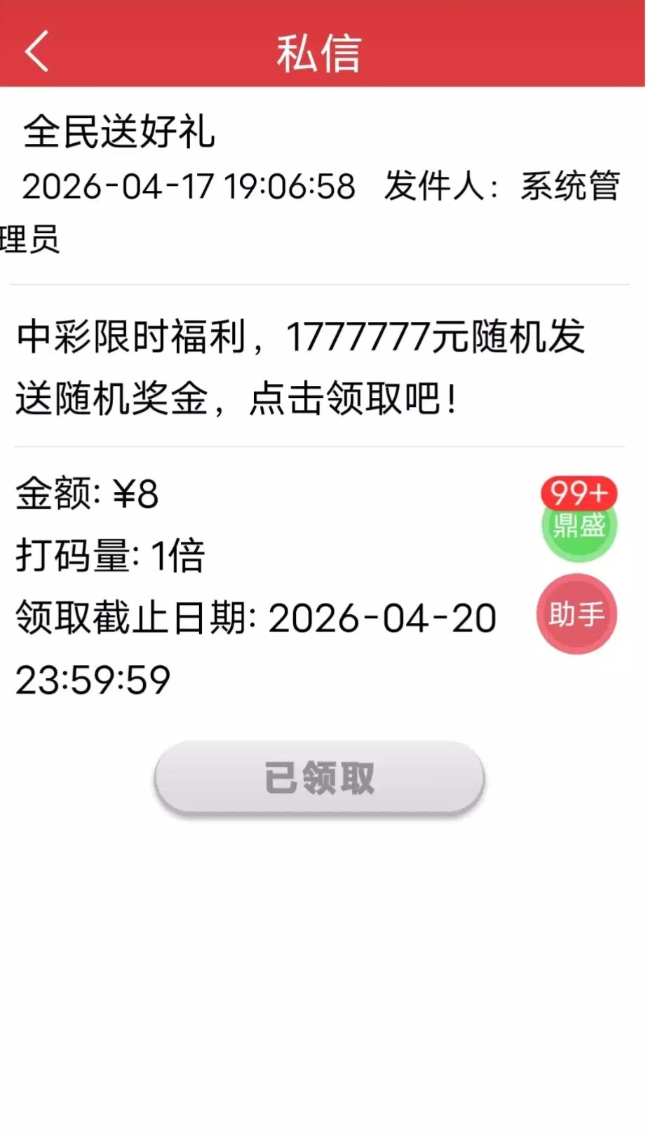 充值过大发的去白嫖9399.com 还有一个zhc103.com 8567.com还有一个聚彩网我找不到了对打一个号大概九块钱