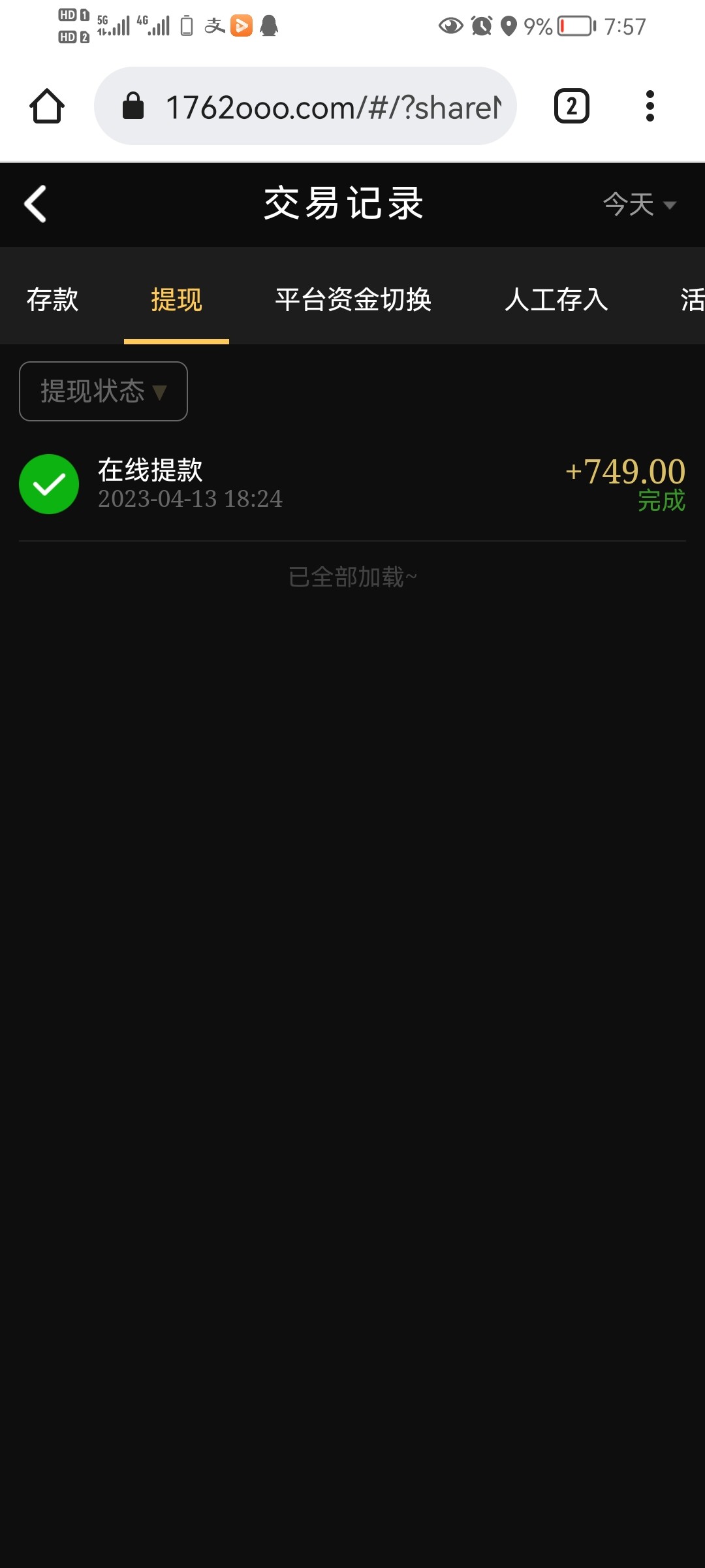 黑款500 提现1个多小时没到账登上去直接提示账号冻结