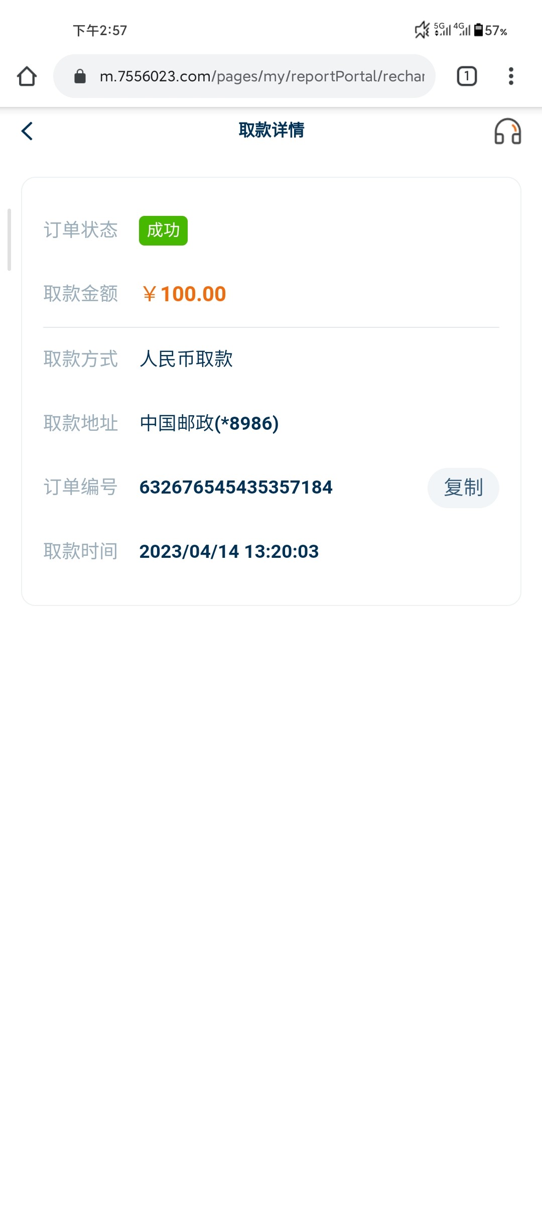 提现到账
