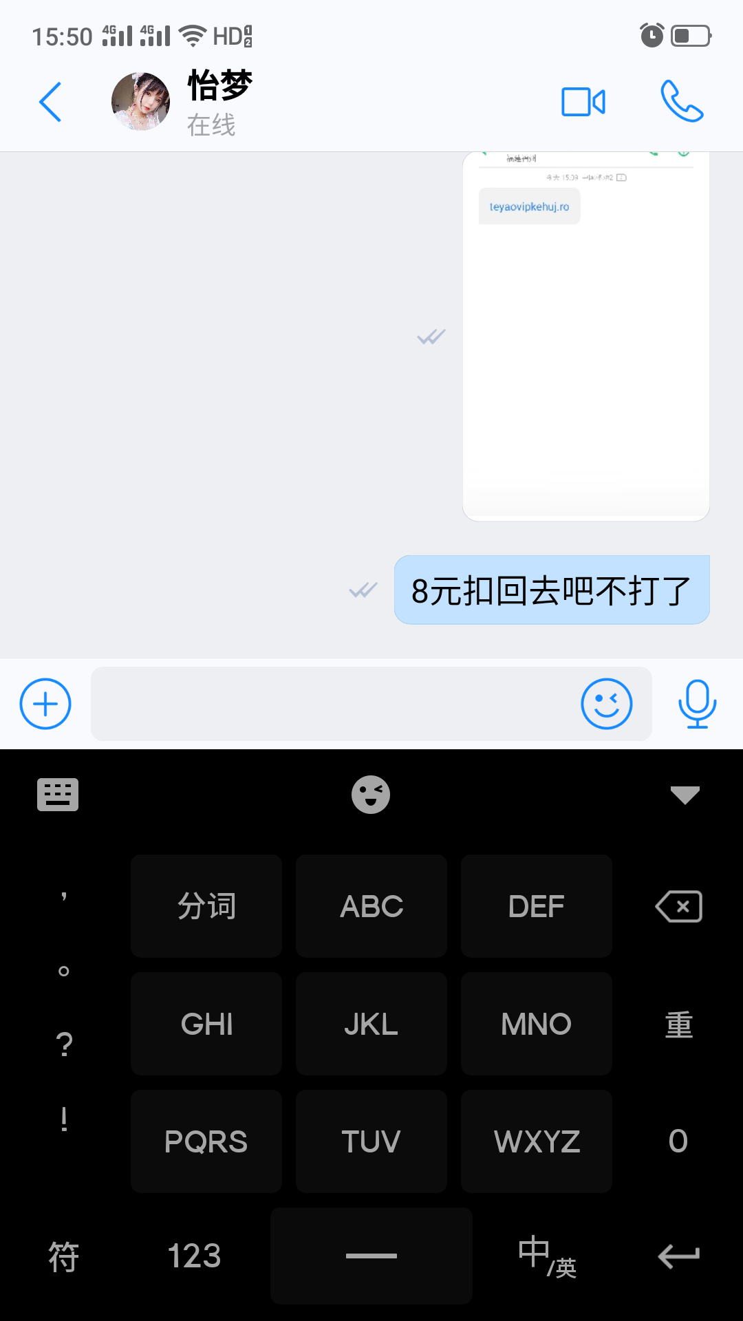 8元懒得打,直接叫她扣回去。