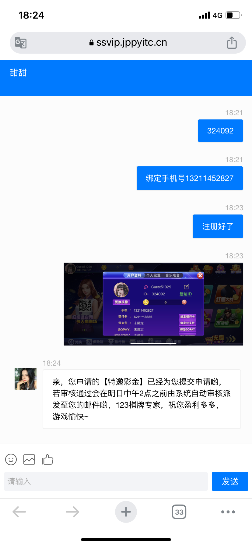 随便发个经常玩的平台给他,需要提供账号密码客服验证,不是黑台,发图4给他申请。反正我秒到了。