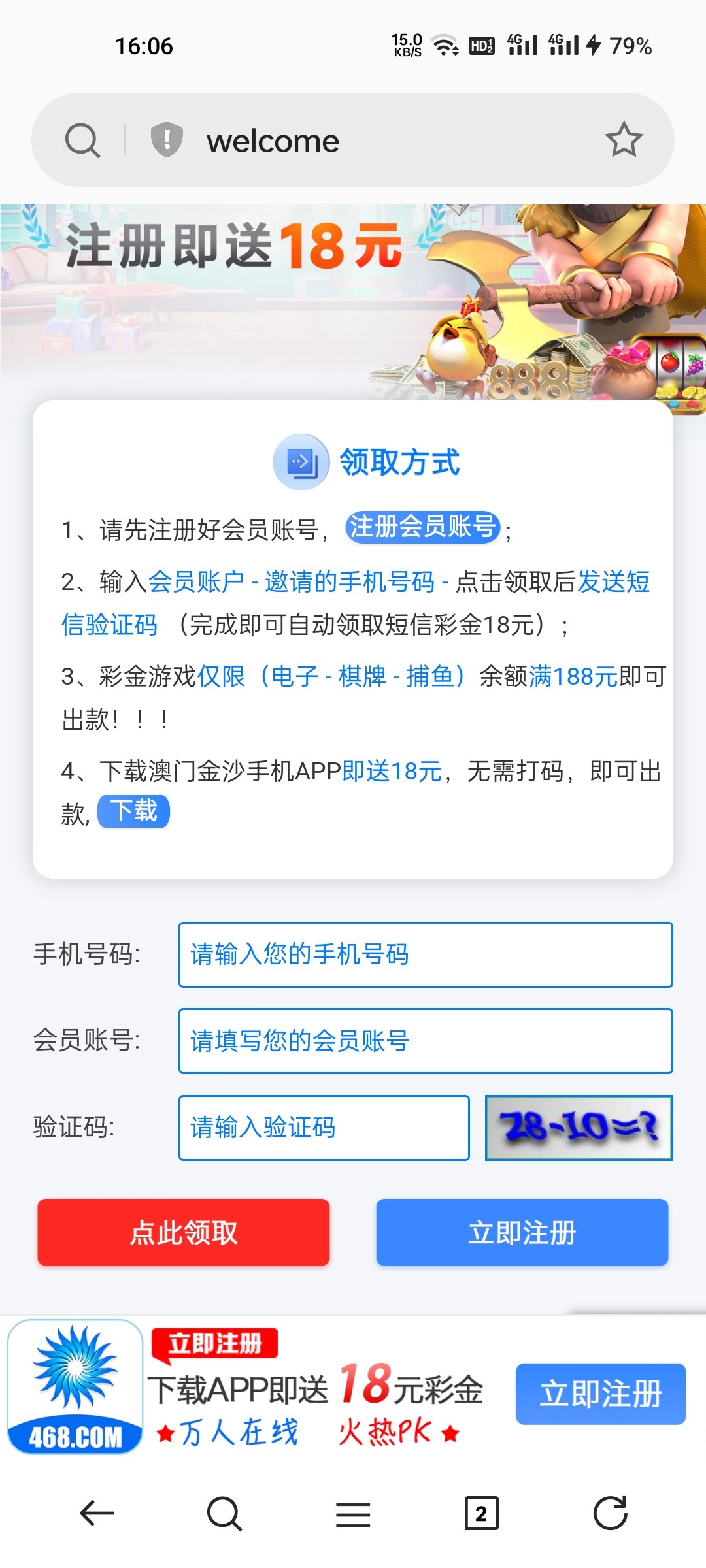 468特邀送18彩金