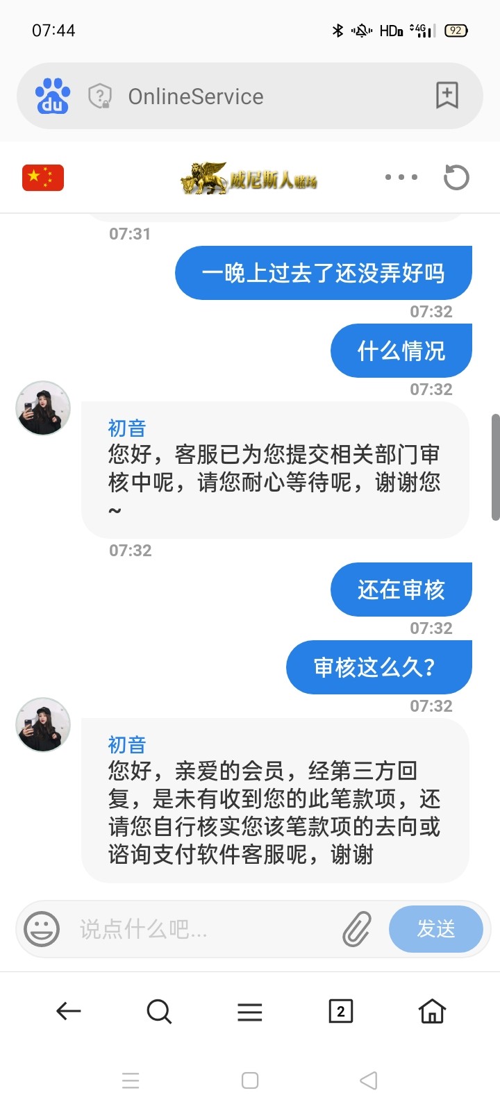 什么证据都提供了  包括手机录屏  勾庄想尽办法搞你  最后没办法了一口咬死第三方没收到款  让我自己弄  这蓝屏葡京 威尼斯开始黑了  老哥们避雷