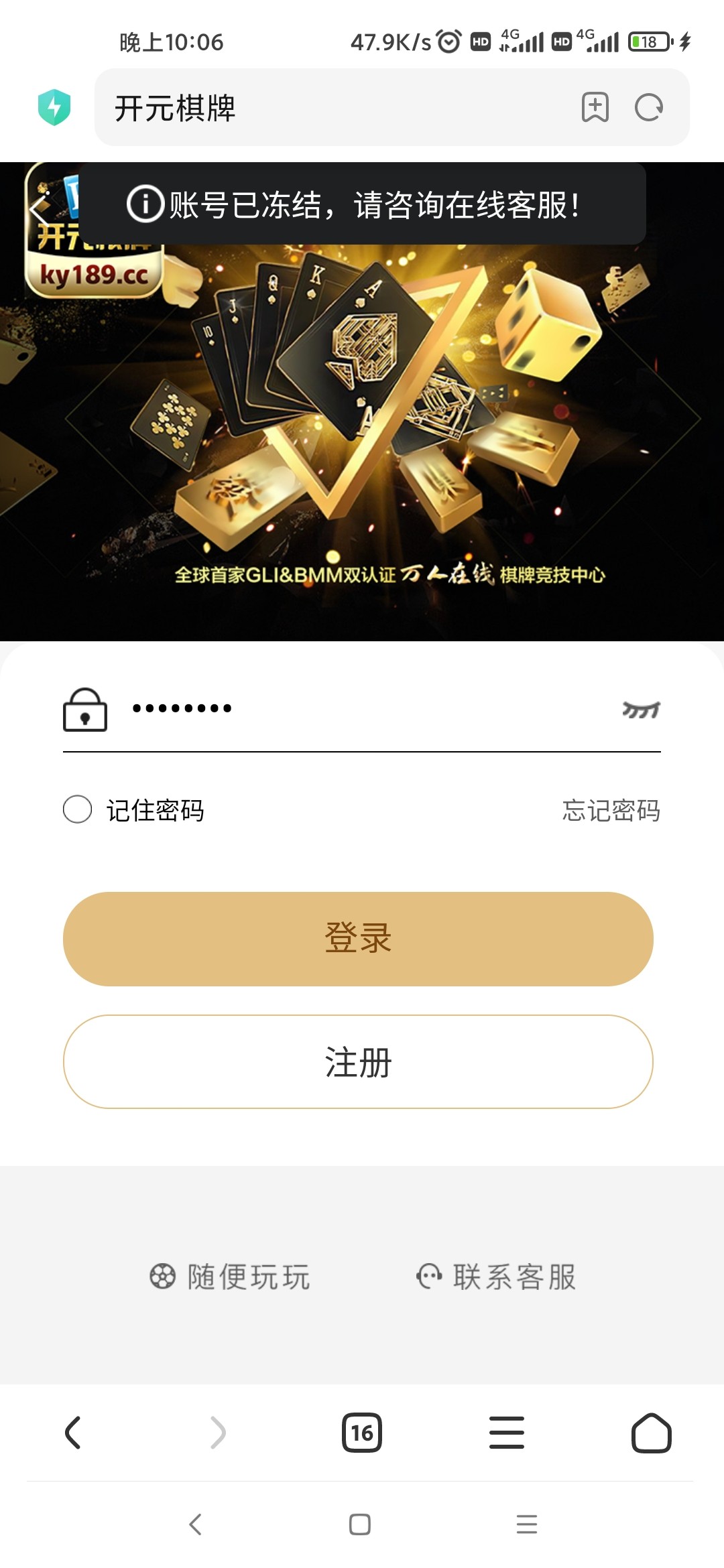 我昨天冲100到账直接冻结,在群里说了