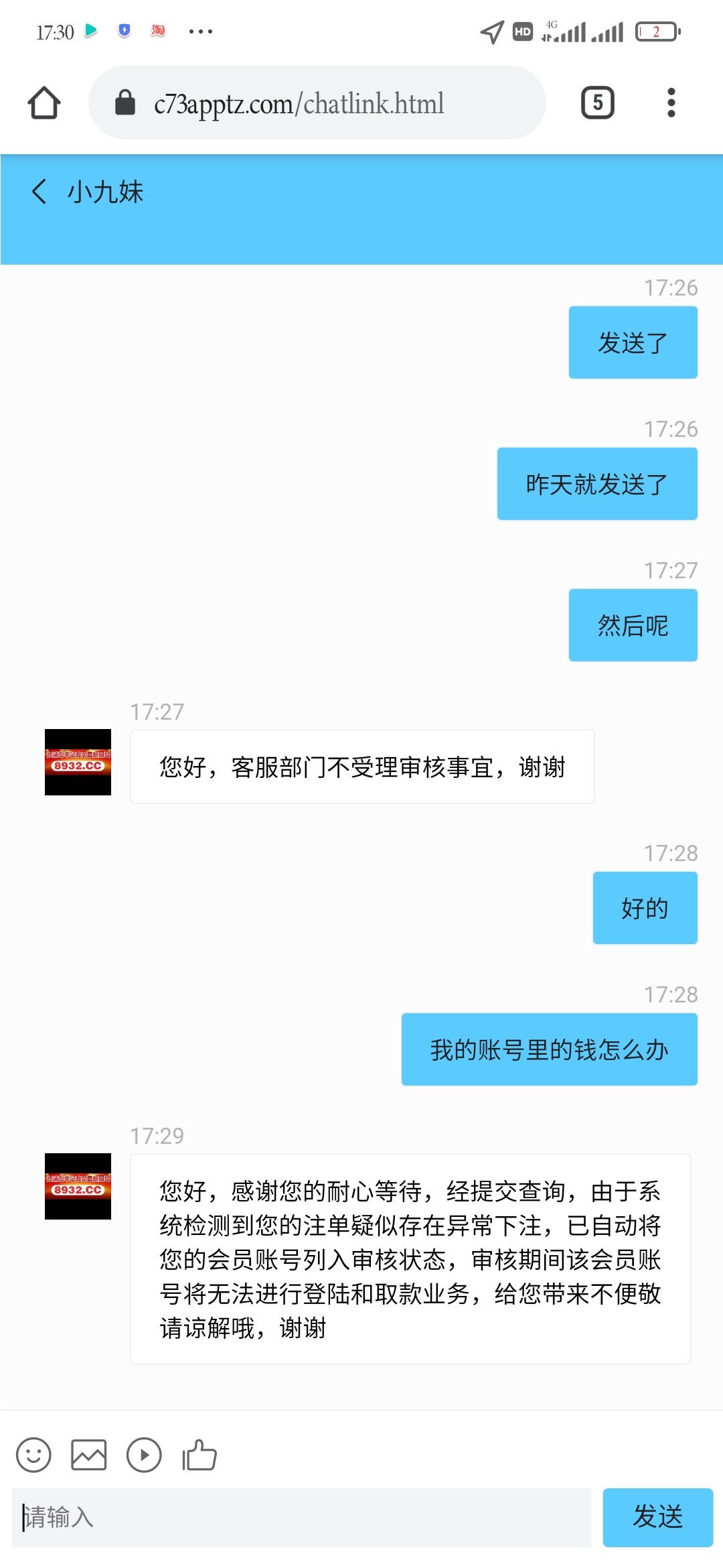 我参加首存活动,1500➕1500,赢到1.9w,我提现时说我注单异常,账号被冻结了,黑我1500,网址8932.cc