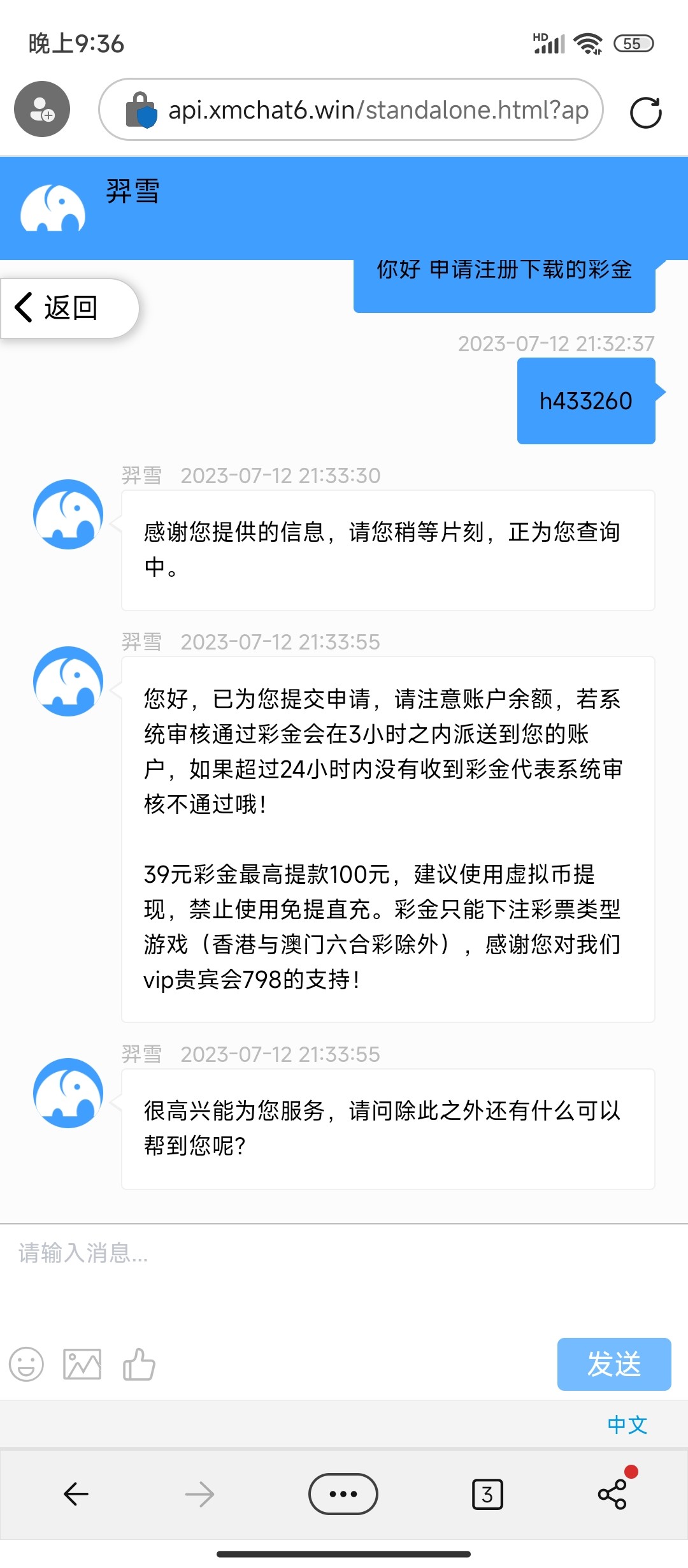 新用户注册绑定信息联系在线客服申请39彩金,应该查IP有点严,建议换干净IP去,具体自测吧切记勿充值。