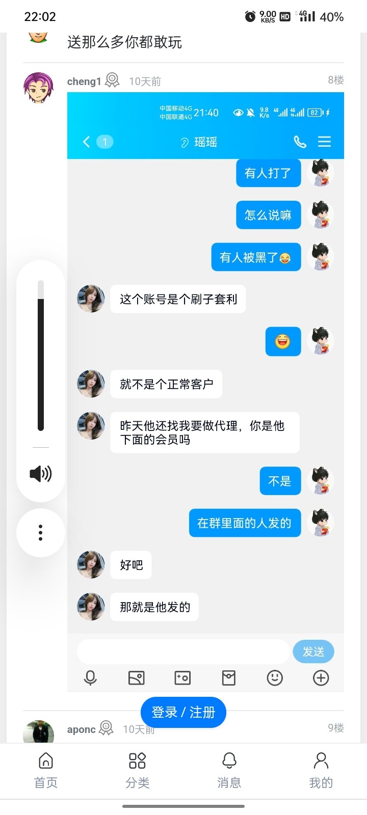 电话邀请骗人充钱,他喵的玩电子一点水没有,后面玩真人把本打回来了不给出要我在存300,黑平台来着兄弟们打电话只要一听是888娱乐直接挂电话就好啦