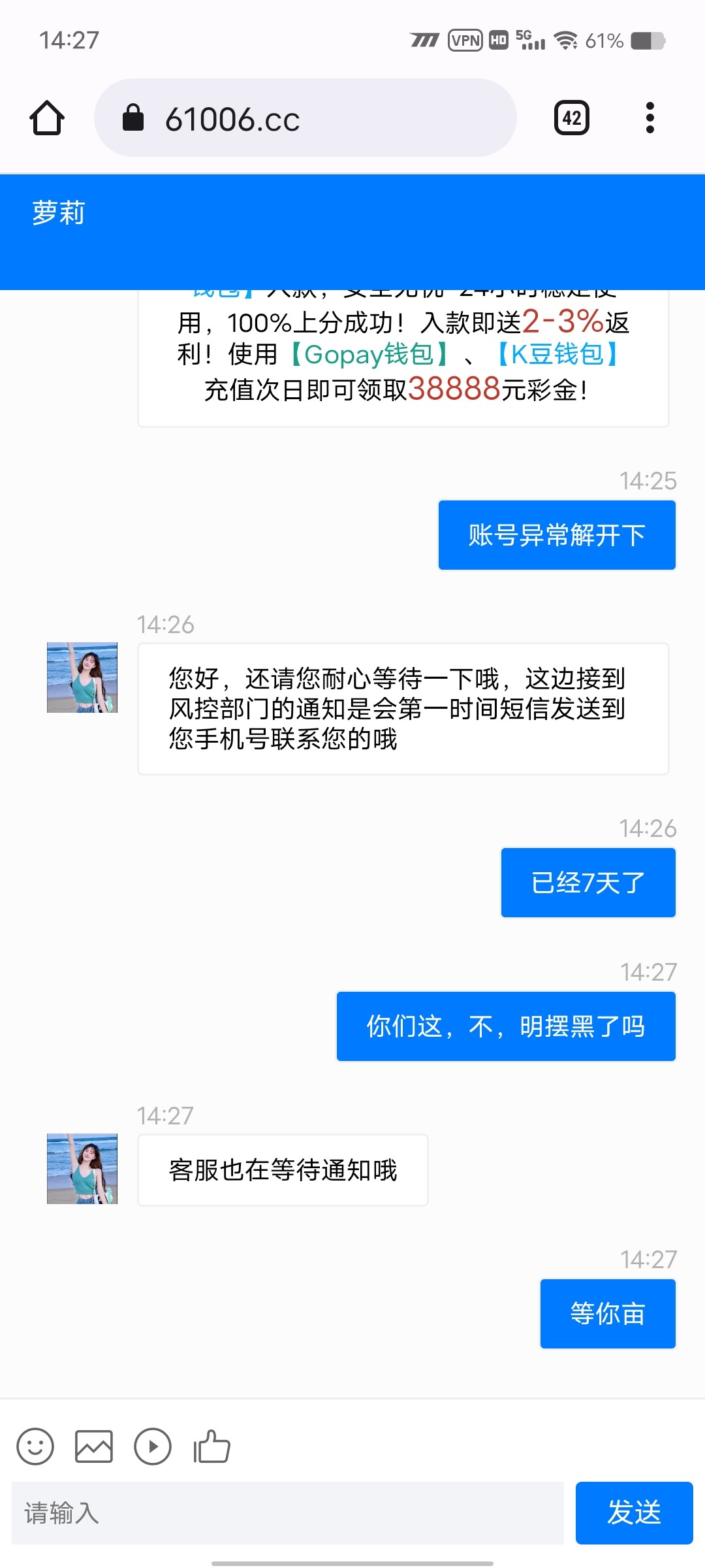 我就打pg提500不给,还不退本金,一直都这话