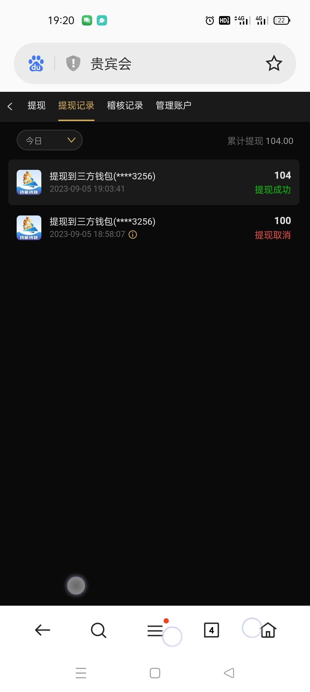 qq10421877 你是秒到吗 我也提了110 显示提现成功 但是没到账我是提的卡 我的是不是黑了