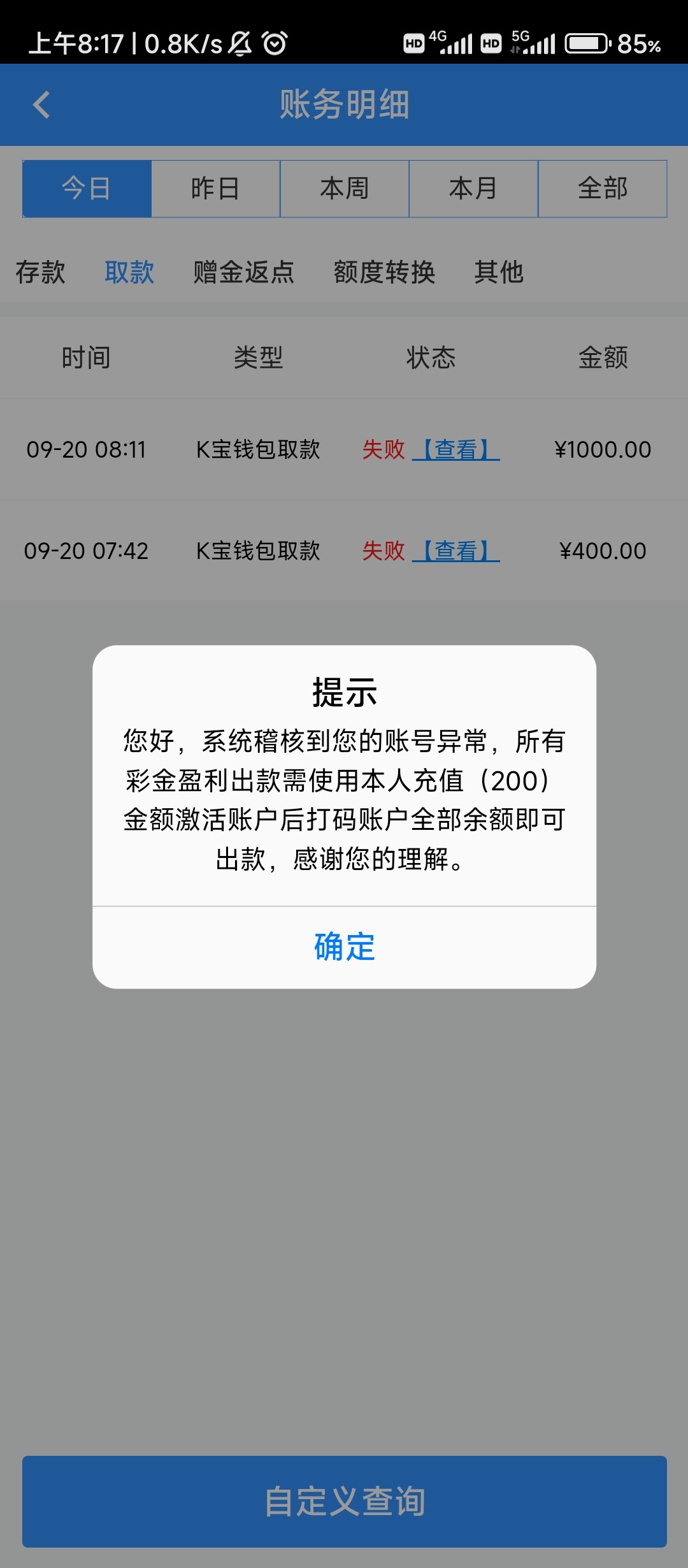 出款情况:半黑
