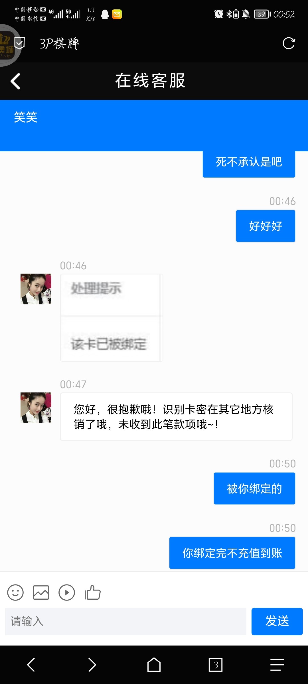 200e卡提交充值没两分钟就绑定了,死不承认