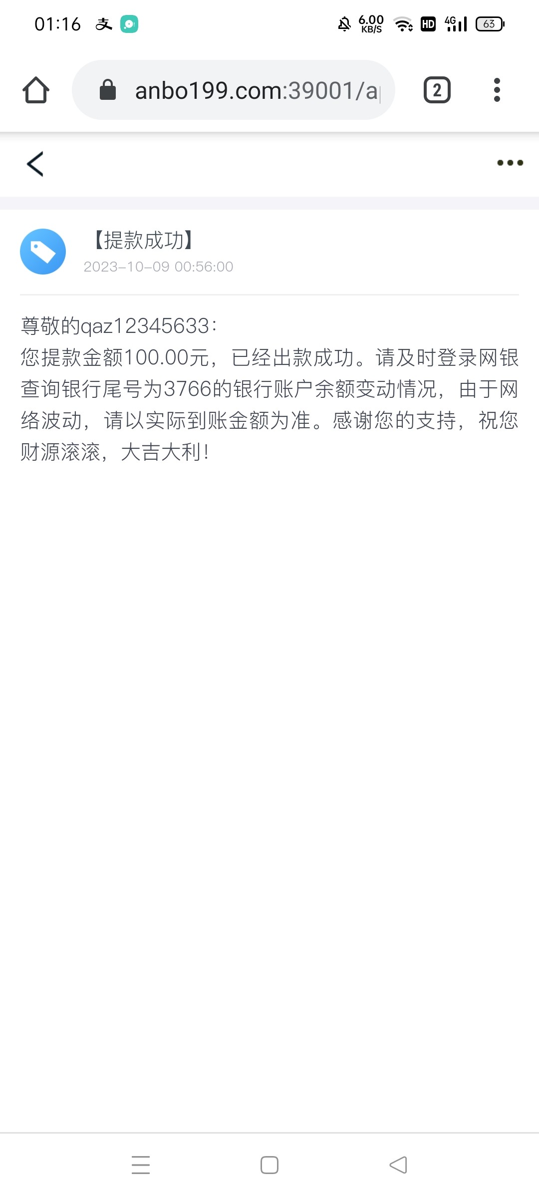 到账了