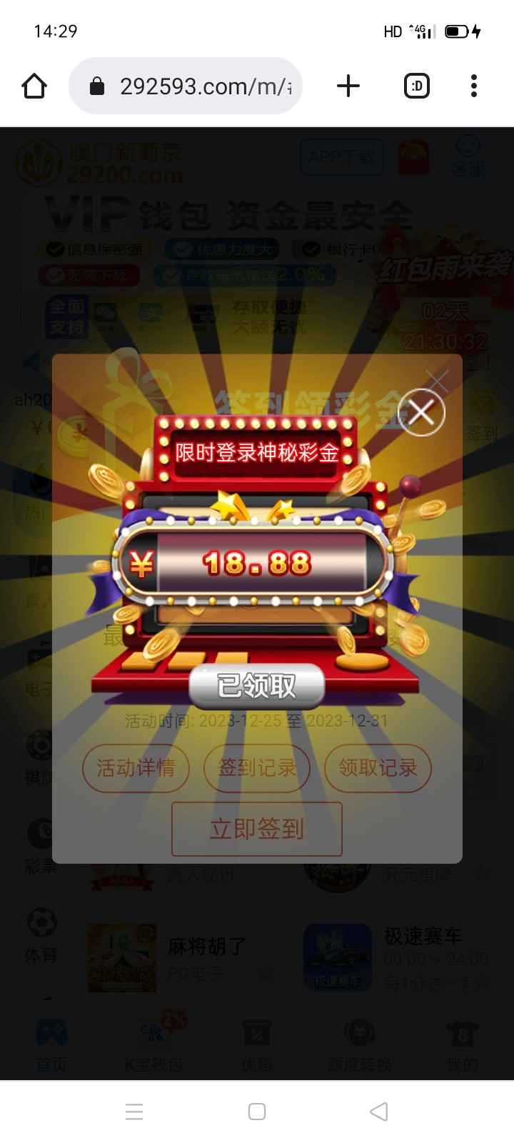 藏分卡免费,一次别提太多。这b网以前撸签到刷过。是这样的。超过一倍就不容易出,但不封你号。也别超过1000,容易出