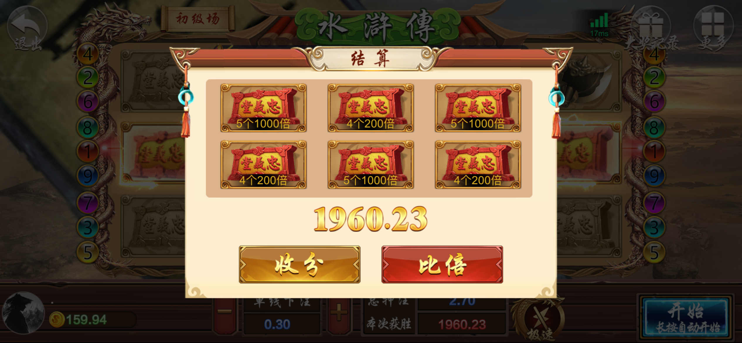 打出来了不知道能不能到,进去玩老虎机点俩下就一百多了