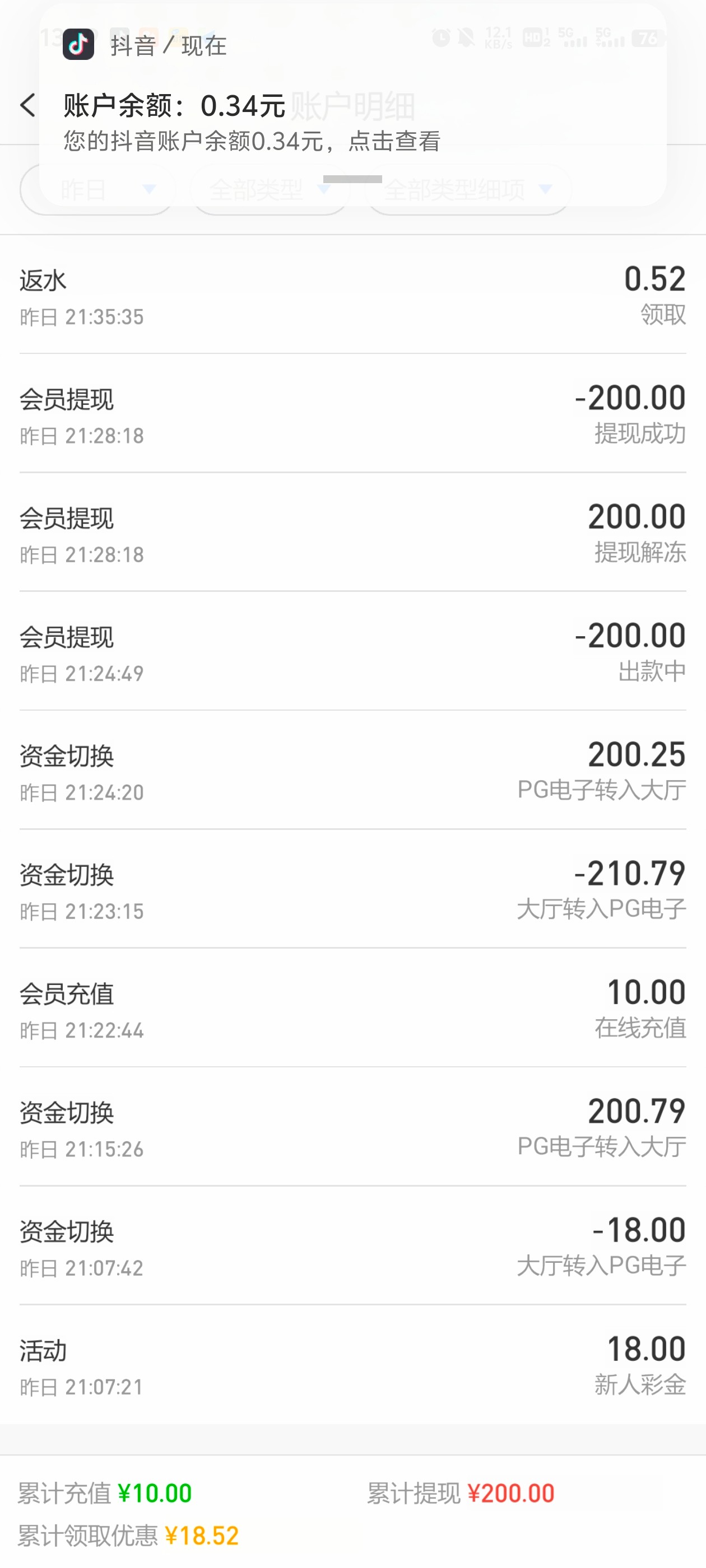 我也充10提了180