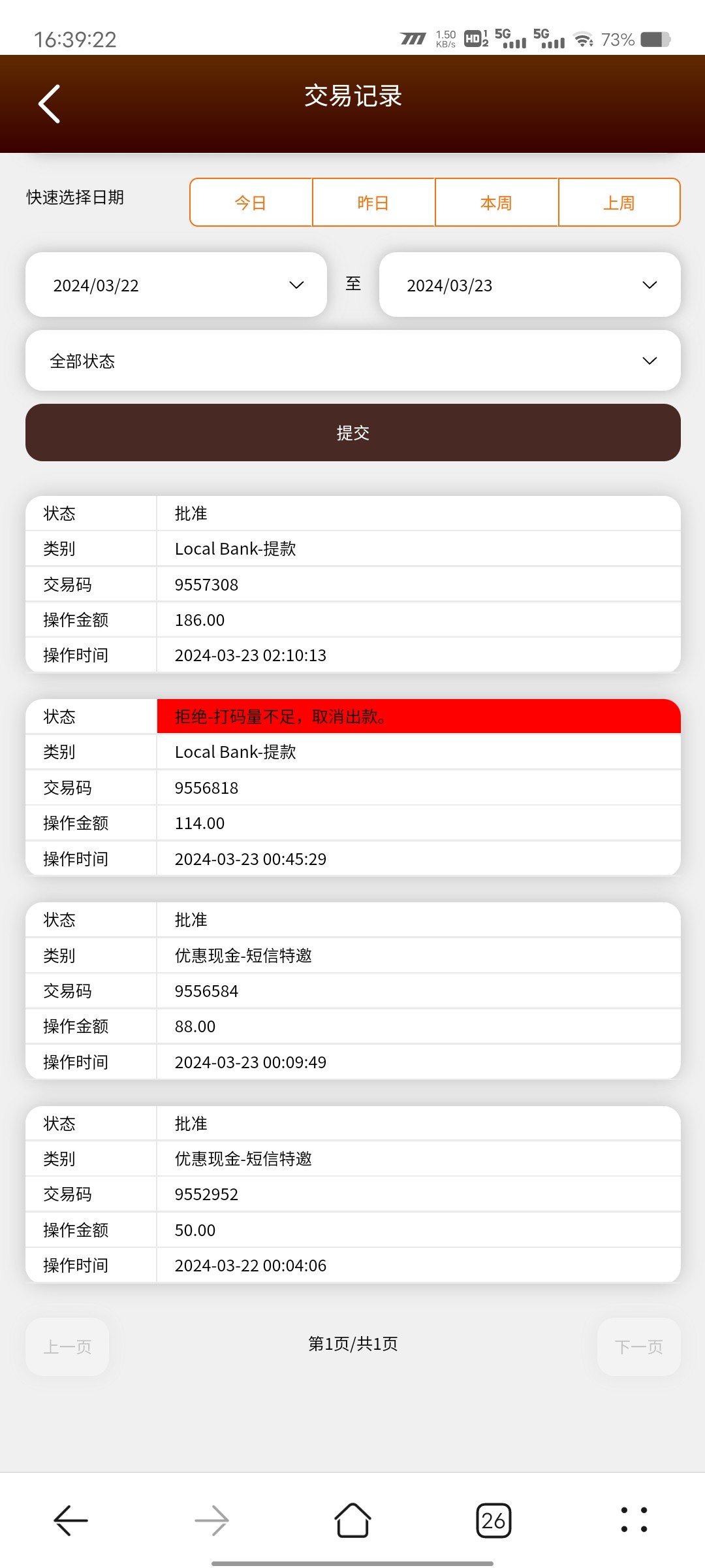 狗庄他亲爹 好几次流水不够退回了 不知能不能到到账