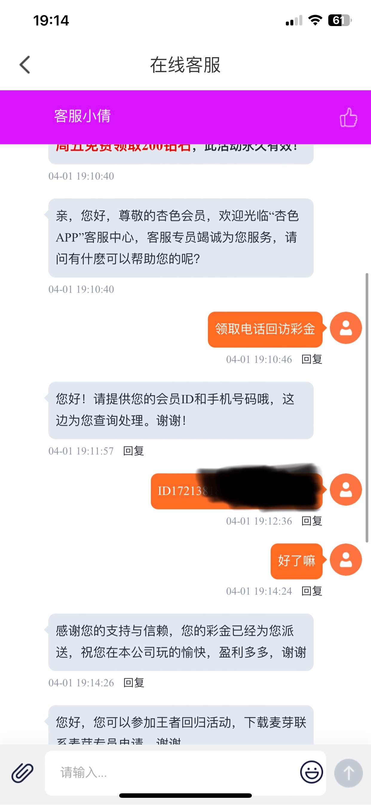 碰瓷电话回访彩金