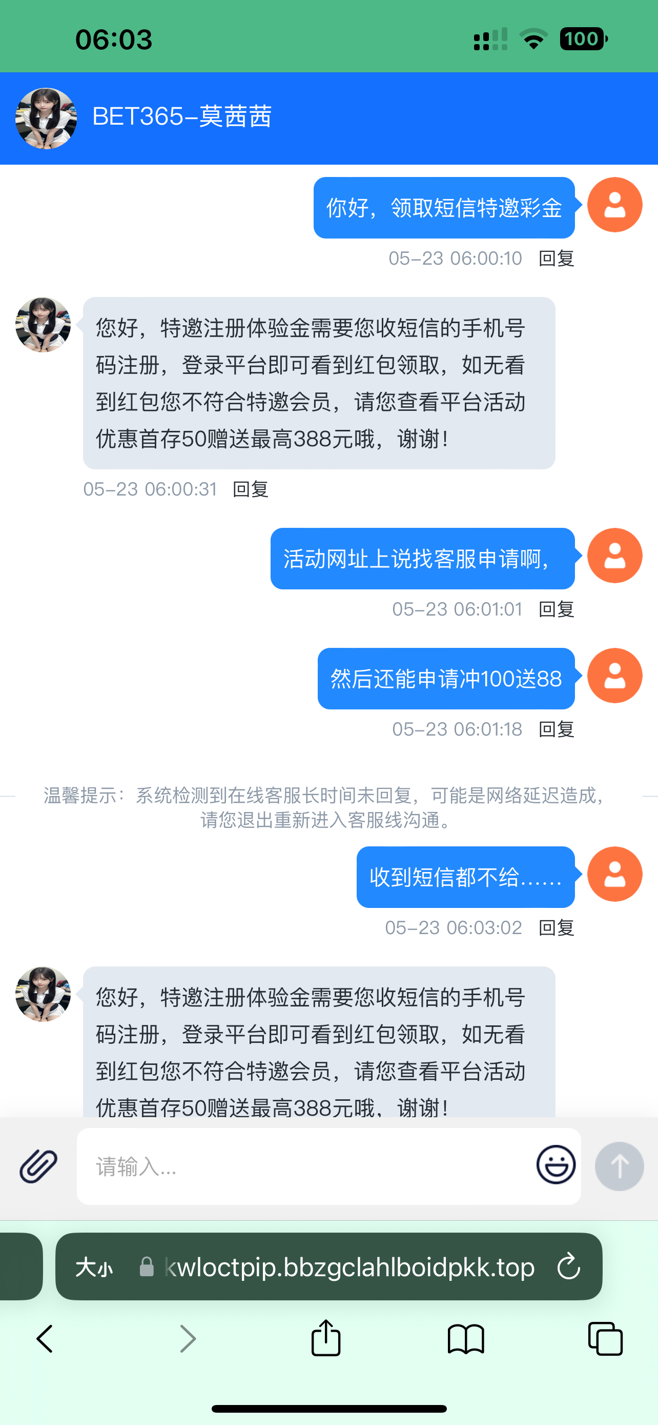 收到短信也不给我今天刚收到去试了狗客服是有充值