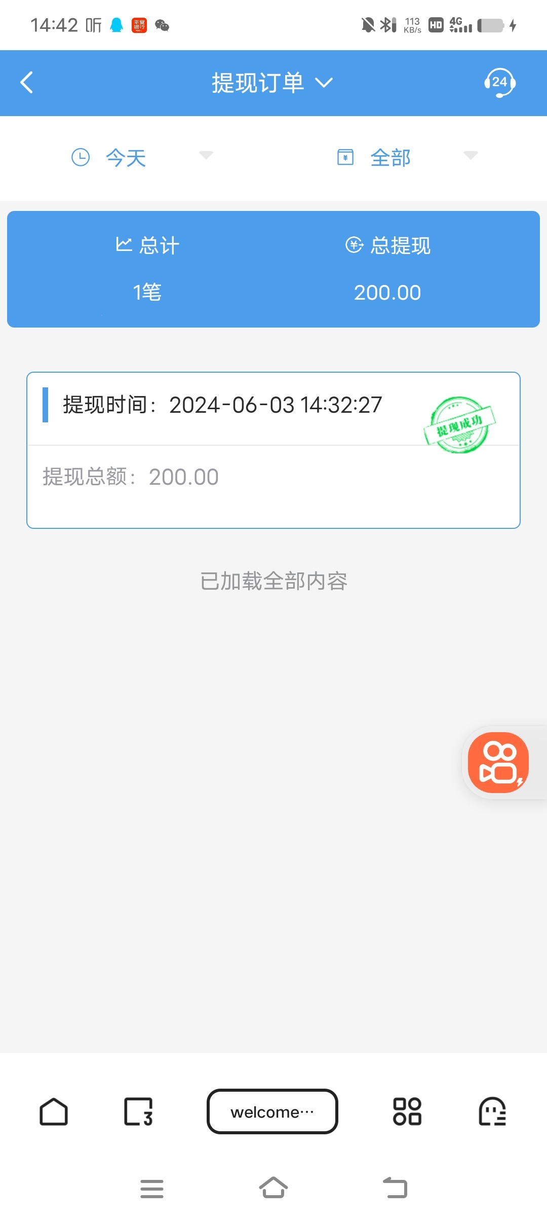 到账了