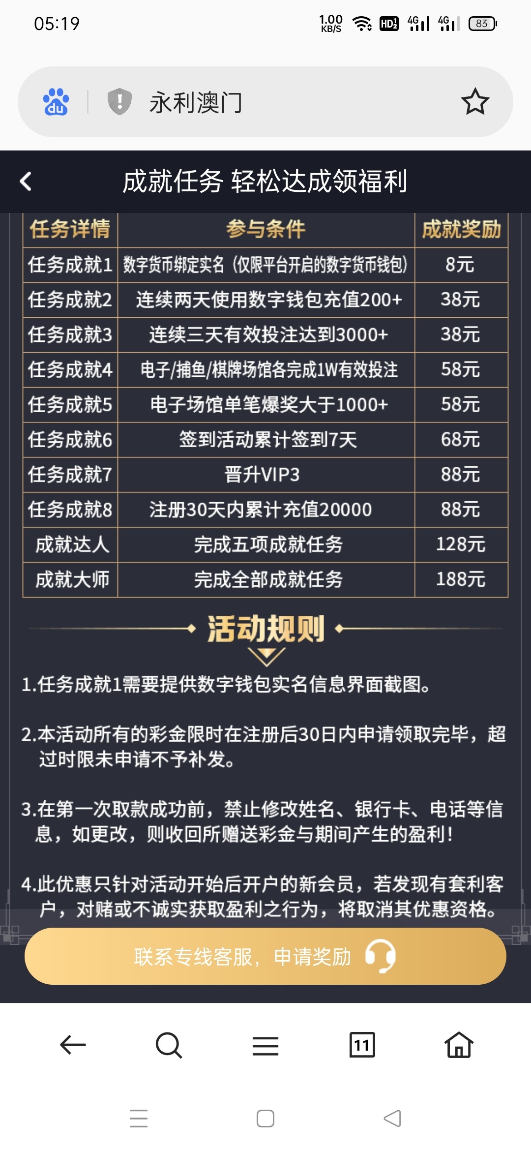 要充值满三百才能申请8元彩金,