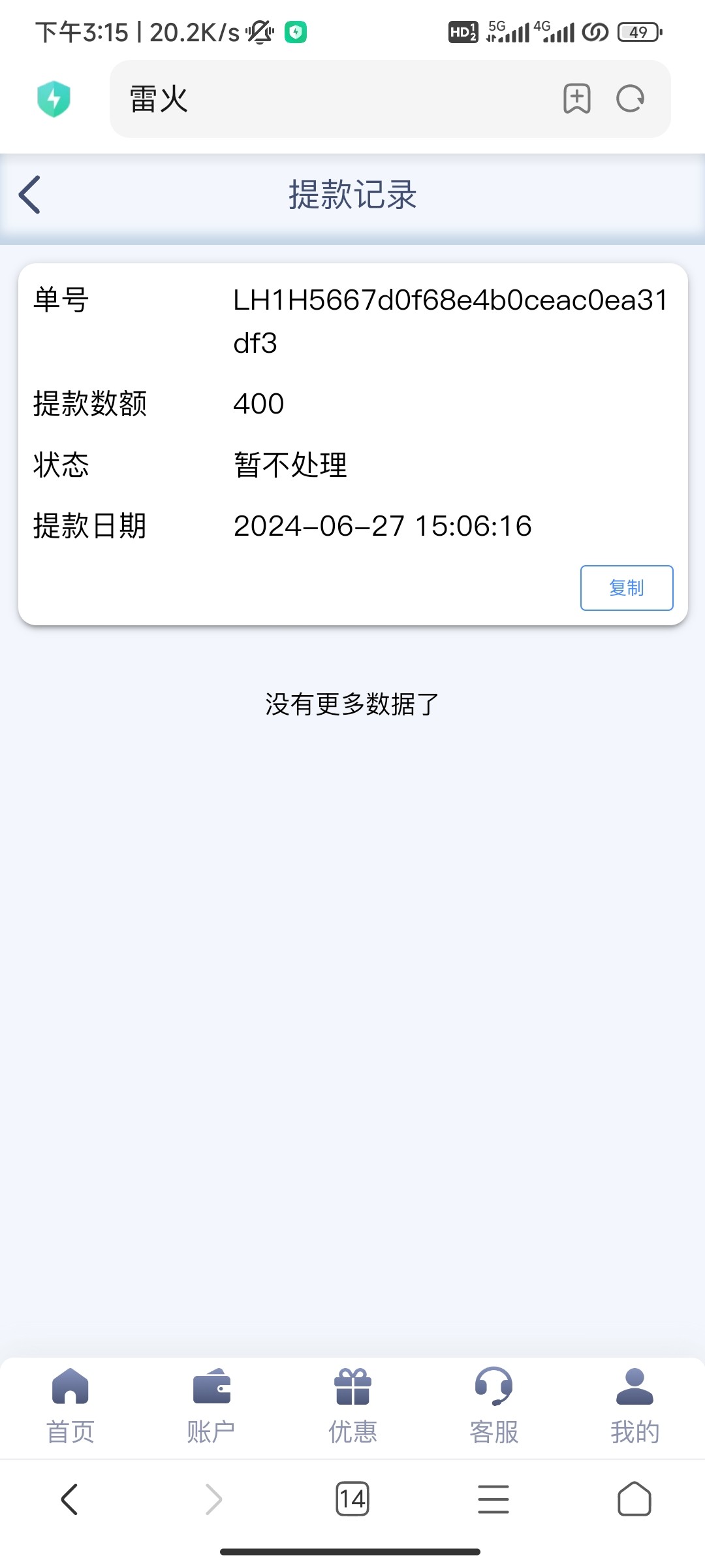 雷火纯黑台,提现200多,踏马的要了两次录视频,然后封号,狗东西
